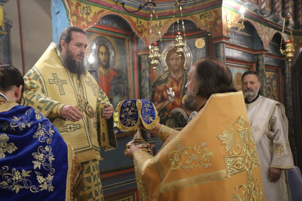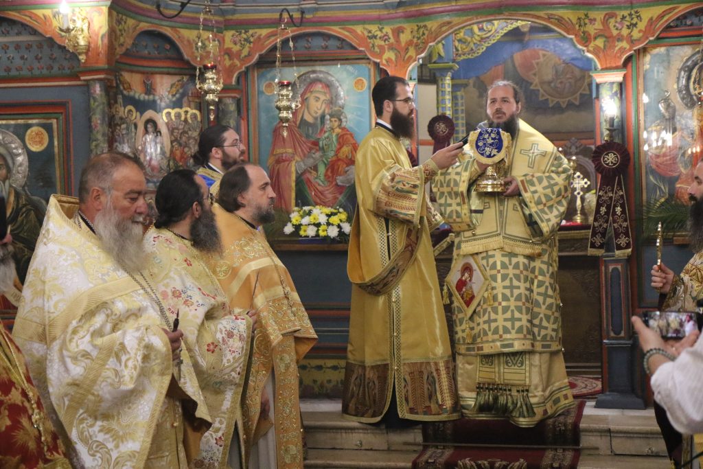 Божественную литургию возглавил первый викарий Софийской митрополии епископ Белоградчикский Поликарп в сослужении епископа Велбуждского Исаака. Преосвященным владыкам сослужили представитель Патриарха Московского и всея Руси архимандрит Вассиан (Змеев), благочинный Софийской митрополии архимандрит Евфимий (Койнов), духовенство Софийской митрополии. По окончании Божественной литургии епископ Поликарп обратился с приветственным словом к владыке Исааку, поздравил его с первой архиерейской литургией и огласил слово Святейшего Патриарха Болгарского Неофита, обращенное к владыке Исааку.