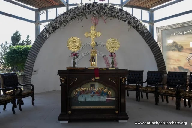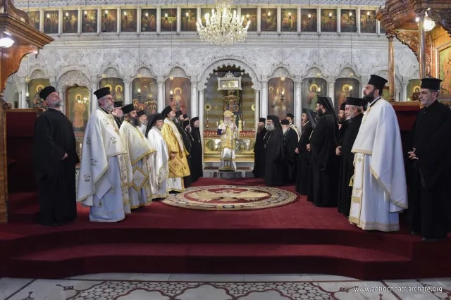Служение Литургии возглавил Блаженнейший Патриарх Иоанн в сослужении митрополита Гор Ливанских Силуана, митрополита Захлейско-Баальбекского Антония, митрополита Латтакийского Афанасия, митрополита Хамаского (Епифанийского) Николая, викарных епископов Ларисского Моисея, Дарайского Моисея, Сергиопольского Иоанна, Селевкийского Романа, Филадельфийского (Иерапольского) Арсения, епископа Апамейского Феодора, секретаря Священного Синода епископа Эмиратского Григория, представителя Патриарха Московского и всея Руси при Антиохийской патриаршем престоле архимандрита Филиппа (Васильцева), исполняющего обязанности игумена Патриаршего монастыря в честь Успения Пресвятой Богородицы в Баламанде архимандрита Георгия (Якуба), декана Богословского факультета Баламандского университета архимандрита Иакова (Халиля), духовенства Дамаска, сирийских и ливанских епархий Антиохийской Православной Церкви.