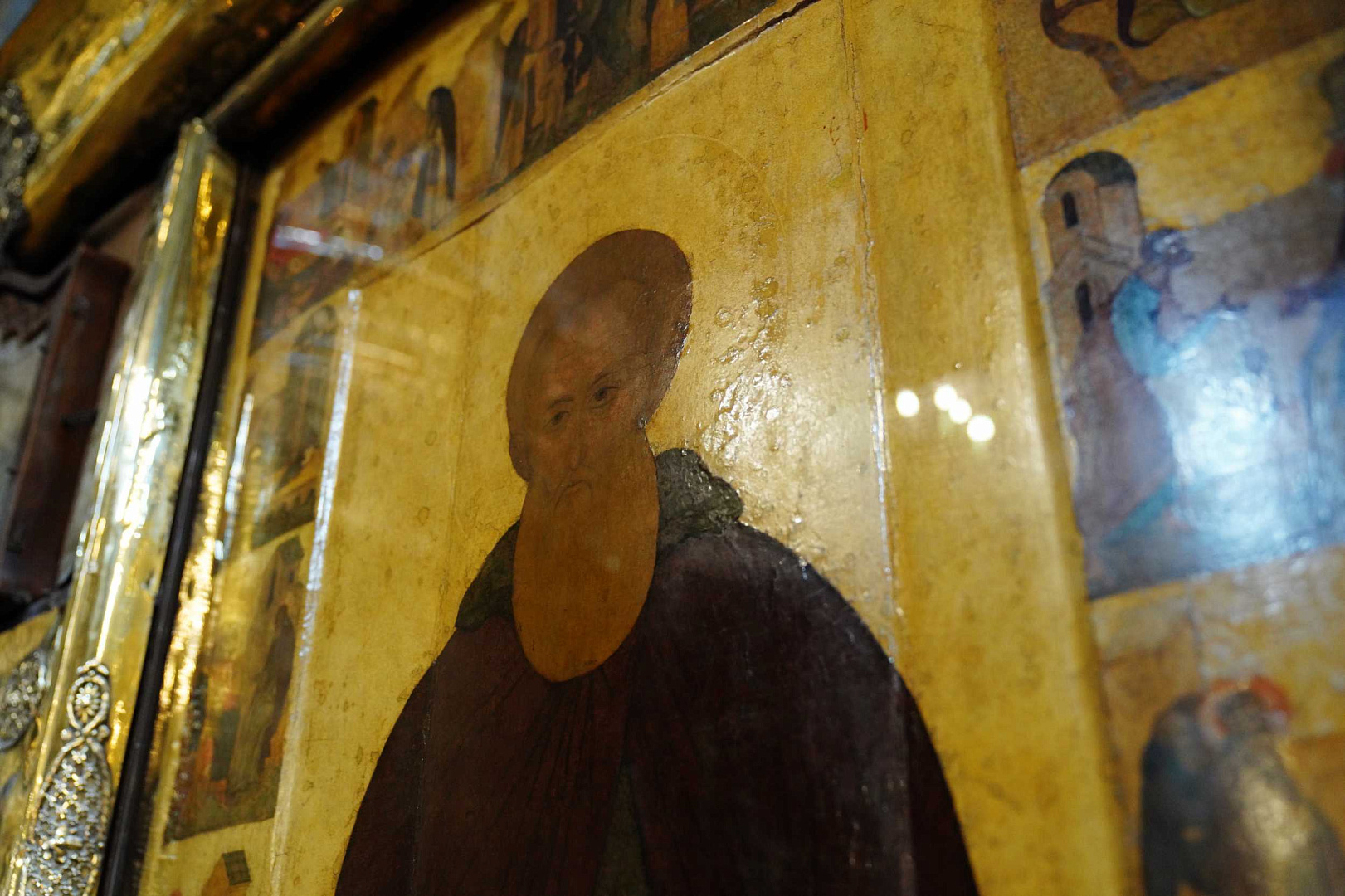 Святейший Патриарх Кирилл проследовал в Троицкий собор, где совершил славление и поклонился честным мощам преподобного Сергия Радонежского. Святейший Владыка также поклонился святыням Никоновского придела и Серапионовой палаты.