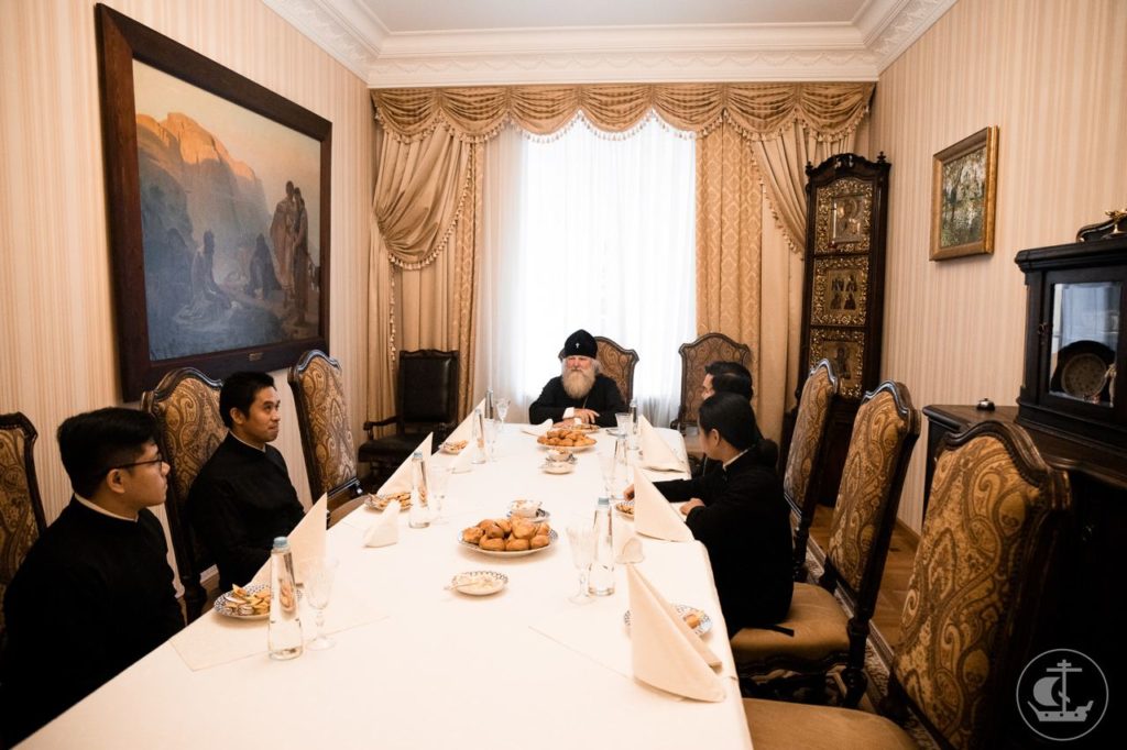 Служба коммуникации ОВЦС, 25.10.2023. 23 октября 2023 года в Санкт-Петербурге митрополит Манильский и Ханойский Павел встретился со студентами Филиппинско-Вьетнамской епархии, которые проходят обучение в Санкт-Петербургской духовной академии.