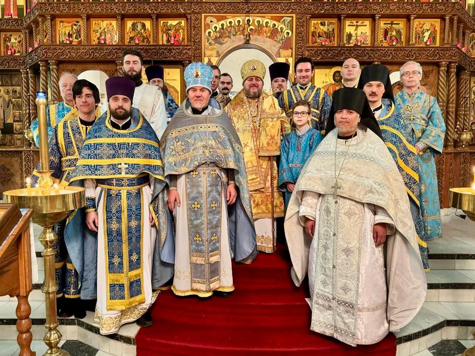 За воскресной Литургией архипастырю сослужили настоятель храма протоиерей Алексий Пьявка, клирики Патриарших приходов в США: и.о. канцлера игумен Никодим (Балясников), вице-канцлер иерей Марк Рашков, иеромонах Сарафим (Балагтас). Диаконский чин возглавил руководитель службы архиерейского протокола Патриарших приходов в США диакон Алексий Голубов.