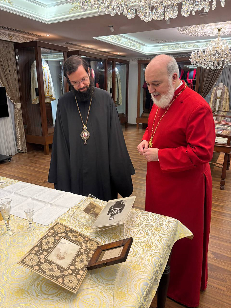 В ходе визита председателя Отдела внешних церковных связей сопровождали секретарь ОВЦС по межхристианским отношениям иеромонах Стефан (Игумнов) и секретарь председателя ОВЦС священник Николай Васин.