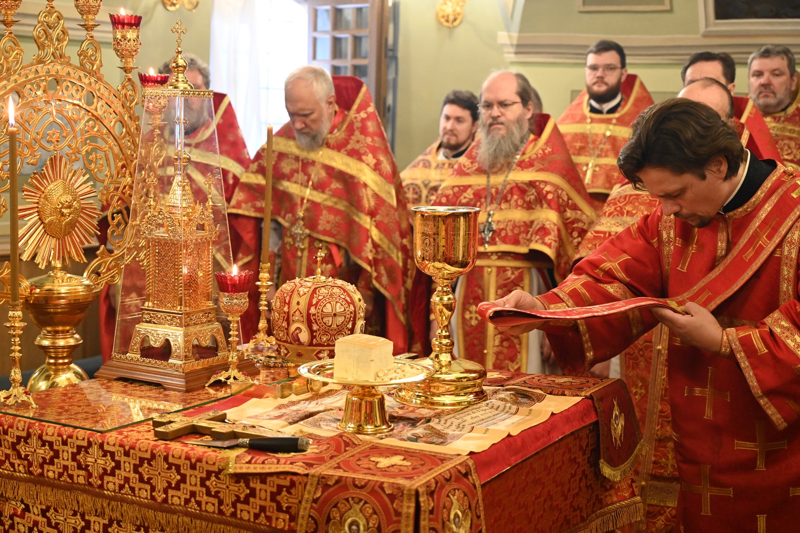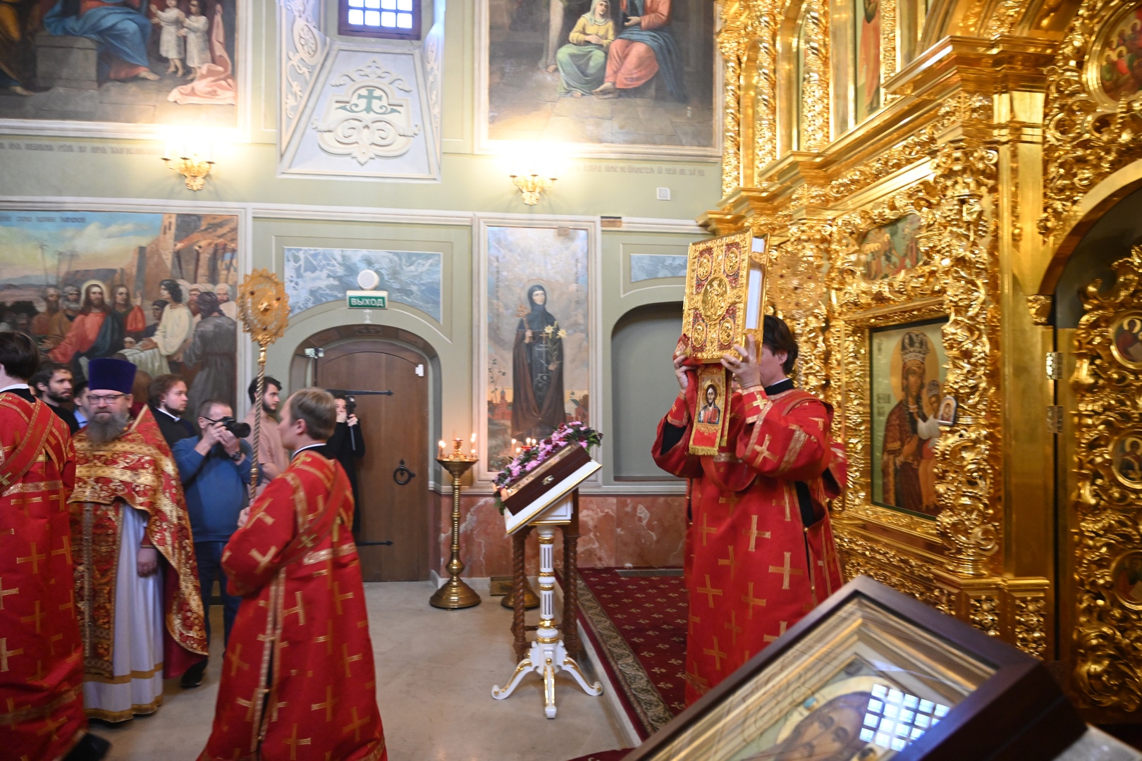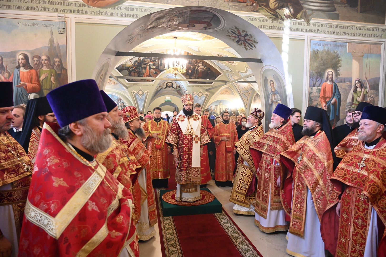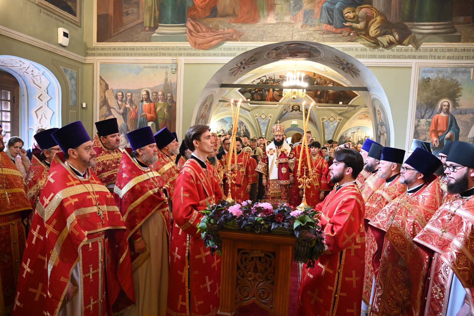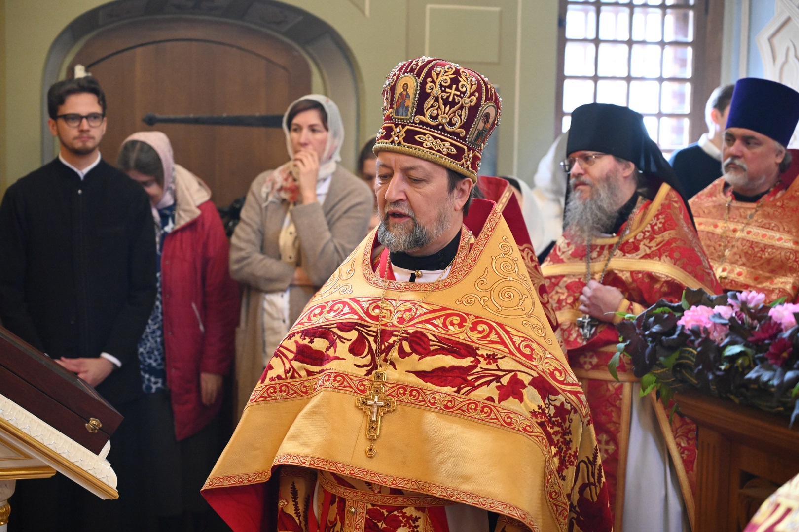 Высокопреосвященнейшему Владыке сослужили: протоиерей Максим Козлов, председатель Учебного комитета Русской Православной Церкви, ректор Общецерковной аспирантуры и докторантуры, настоятель Патриаршего Черниговского подворья; протоиерей Николай Балашов, советник Патриарха Московского и всея Руси, настоятель храма Воскресения Словущего на Успенском вражке; архимандрит Афанасий (Соколов), ректор Минской духовной академии; игумен Иоанн (Лудищев), ректор Сретенской духовной академии; игумен Дионисий (Шленов), наместник Андреевского ставропигиального монастыря г. Москвы; протоиерей Сергий Селезнев, благочинный Москворецкого церковного округа г. Москвы, настоятель храма Архангела Михаила в Овчинниках; протоиерей Игорь Выжанов, заместитель председателя ОВЦС, настоятель храма в честь иконы Божией Матери «Всех скорбящих Радость» на Большой Ордынке г. Москвы; иеромонах Лука (Пронских), и.о. ректора Николо-Угрешской духовной семинарии; иерей Дмитрий Гамиловский, ректор Смоленской духовной семинарии; иеромонах Андрей (Коротков), ректор Таврической духовной семинарии; протоиерей Алексий Марченко, начальник отдела докторантуры ОЦАД, и.о. настоятеля храма священномученика Климента папы Римского в Замоскворечье; иерей Павел Лизгунов, проректор по учебной работе Московской духовной академии; иеромонах Мелитон (Павлов), проректор по воспитательной работе Санкт-Петербургской духовной академии; иеромонах Ириней (Пиковский), и.о. проректора по научно-богословской работе Сретенской духовной академии; протоиерей Андрей Милкин, настоятель храма святого великомученика Димитрия Солунского на Благуше; протоиерей Сергий Звонарев, настоятель храма святых мучеников и страстотерпцев Бориса и Глеба в Зюзине; иерей Михаил Желтов, настоятель храма Рождества Христова в Митино; иерей Илия Соловьев, клирик храма Живоначальной Троицы в с. Дьячево; иерей Дмитрий Данилов, ответственный за работу с вузами и научным сообществом Центрального викариатства; иеродиакон Тихон (Кусов), начальник учебно-методического отдела Сретенской духовной академии, а также клирики Черниговского подворья и сотрудники Общецерковной аспирантуры и докторантуры в священном сане.