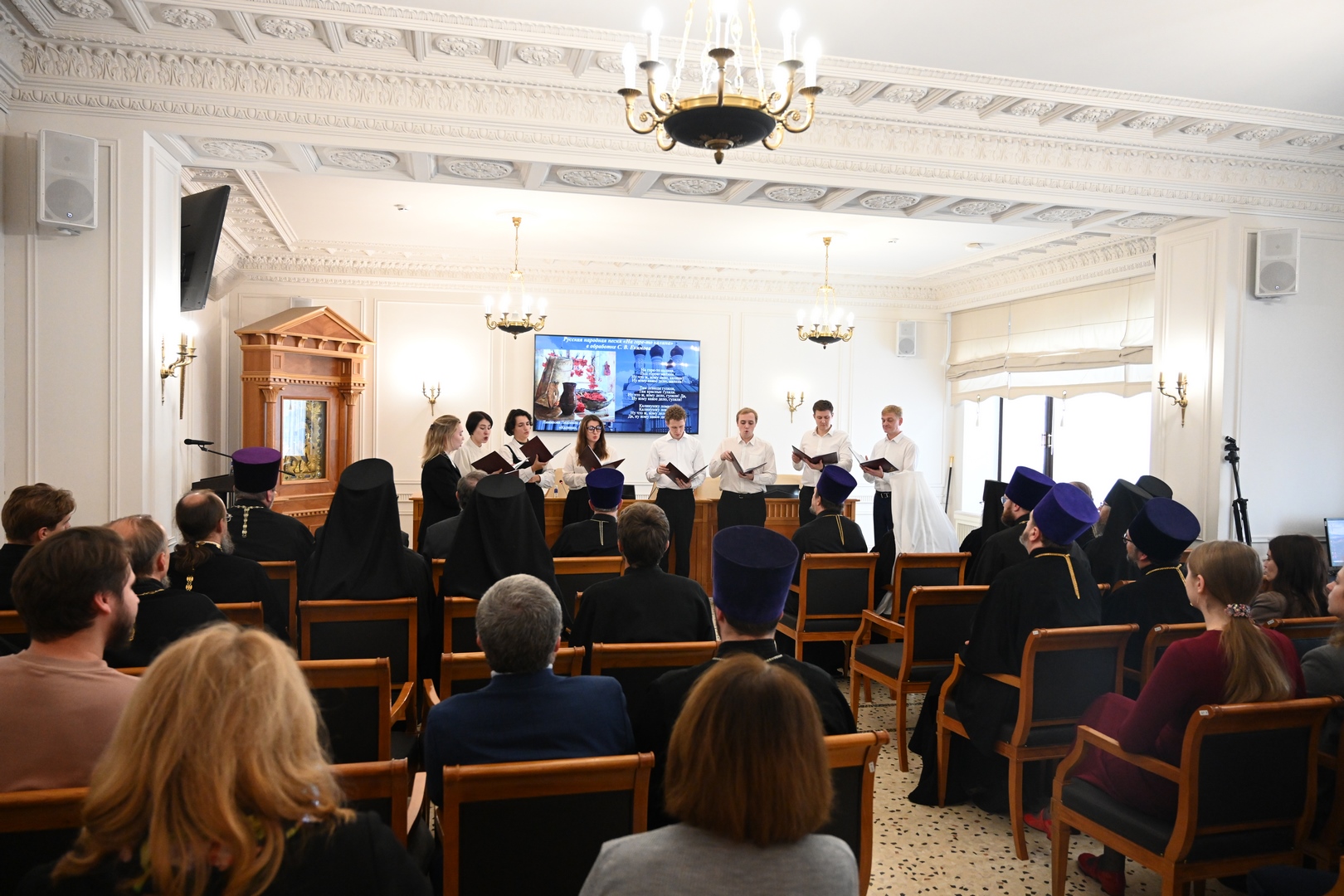 В завершающей части торжественного акта студенческий хор Общецерковной аспирантуры и докторантуры и хор Патриаршего Черниговского подворья под управлением Е. Плетневой выступили с концертной программой. Прозвучали, в частности, студенческий гимн «Gaudeamus», «Любовь святая» Г.В. Свиридова, произведения С.В. Рахманинова, И.О. Дунаевского, Г.И. Гладкова, М.Л. Таривердиева, С.В. Екимова. Ряд произведений был исполнен в переложении на греческий и латинский языки.