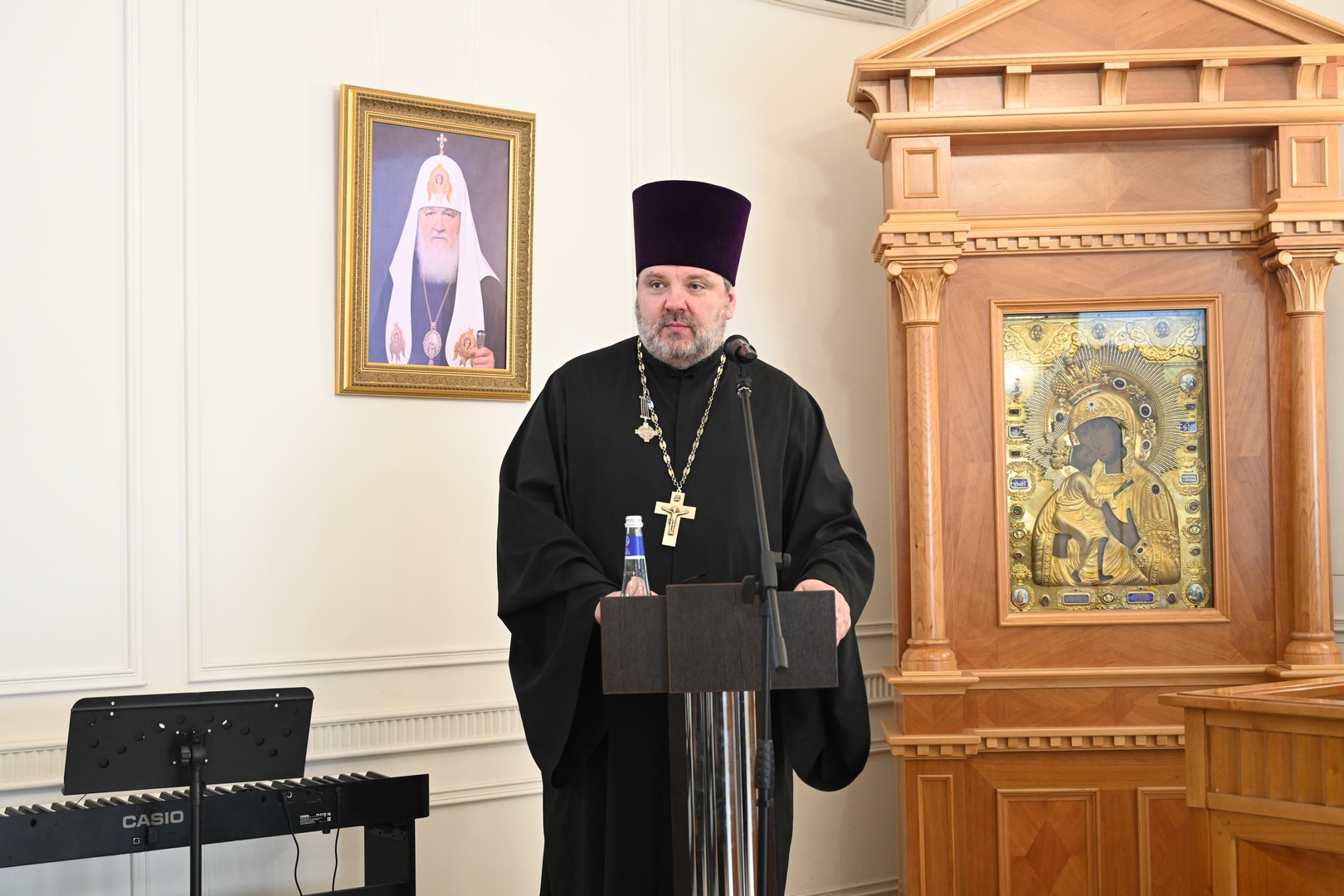 Актовую речь на тему «Церковно-государственные отношения в период патриаршества святителя Тихона (Беллавина)» произнес доцент ОЦАД, кандидат богословия иерей Илия Соловьев.