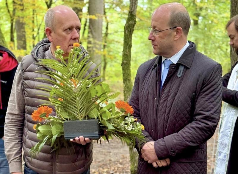 Генеральный консул России в Страсбурге В.В. Павлов и мэр города Фольклен Б. де Фейтер возложили цветы к отреставрированной могиле павших воинов.