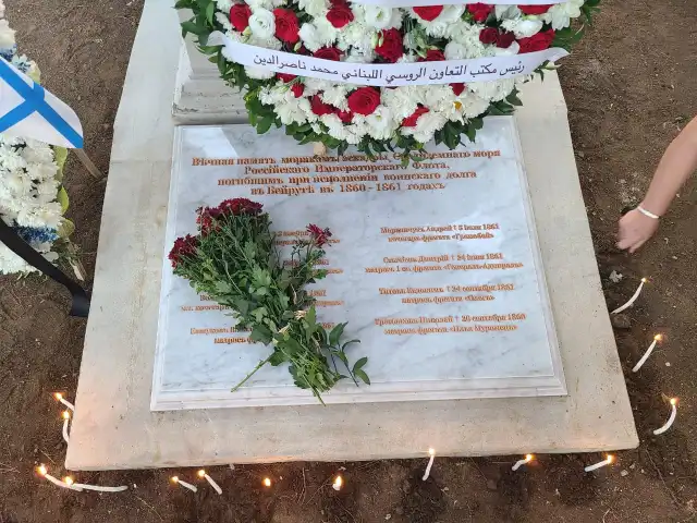 Накануне были завершены работы по реставрации памятника мичману фрегата «Олег» барону Готгарду Бистрому и установлена мемориальная плита с именами русских моряков, погребенных в Бейруте в 1860 – 1861 гг.