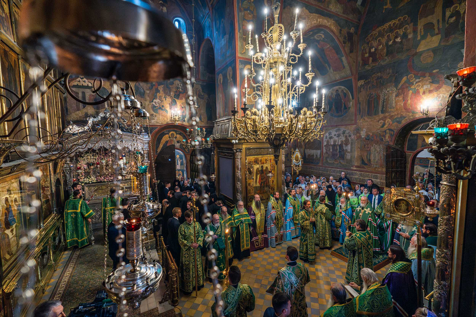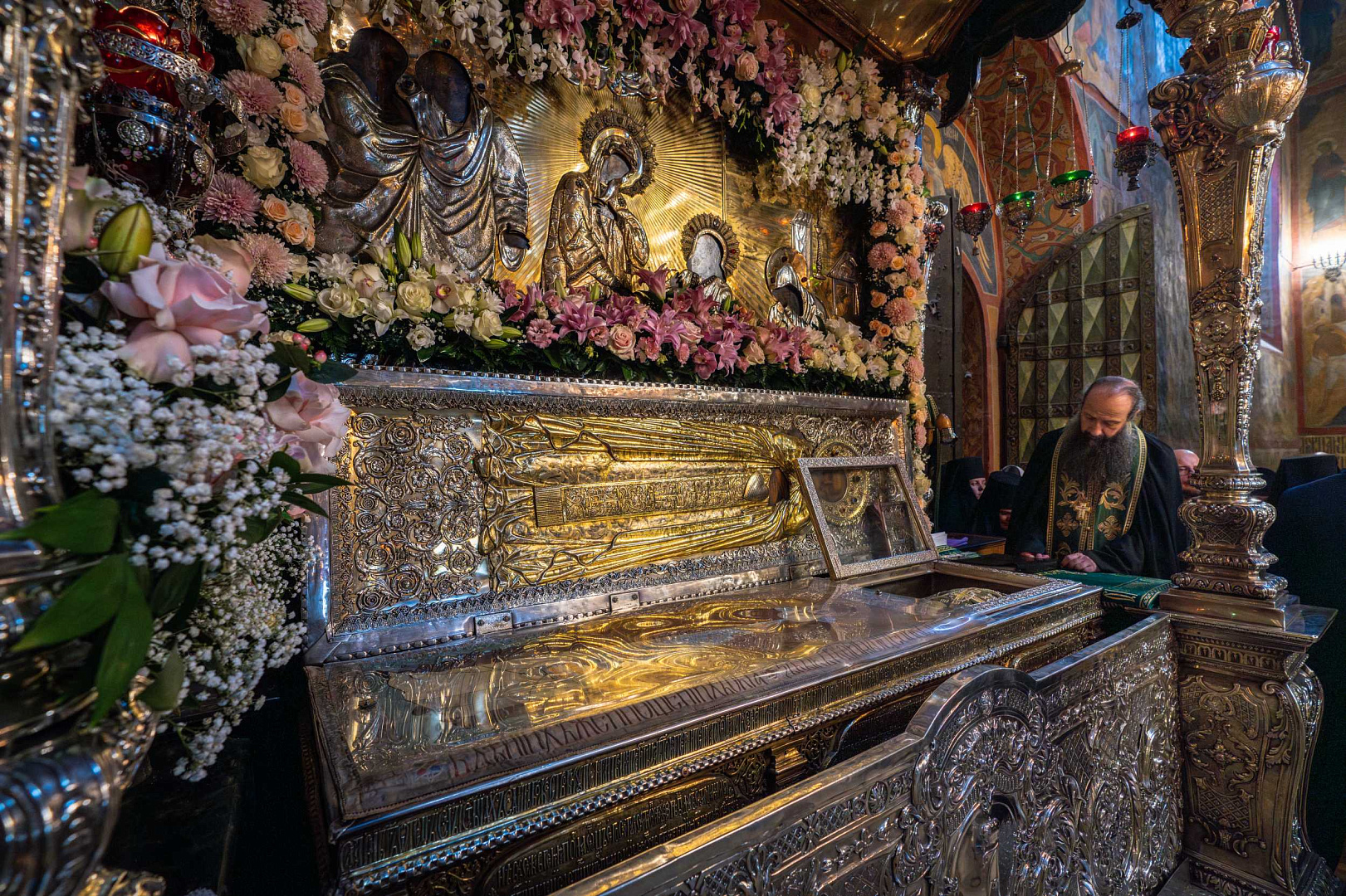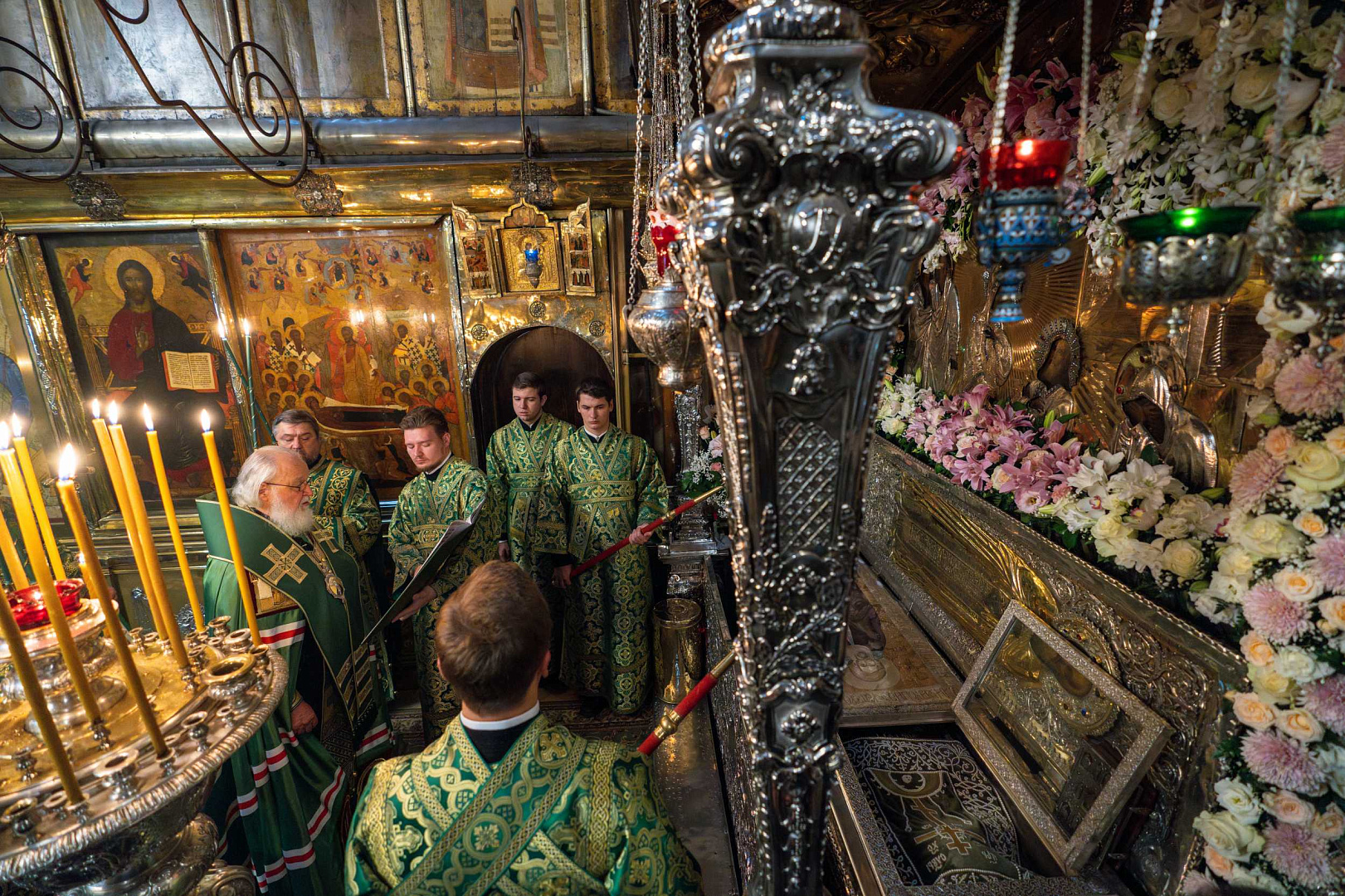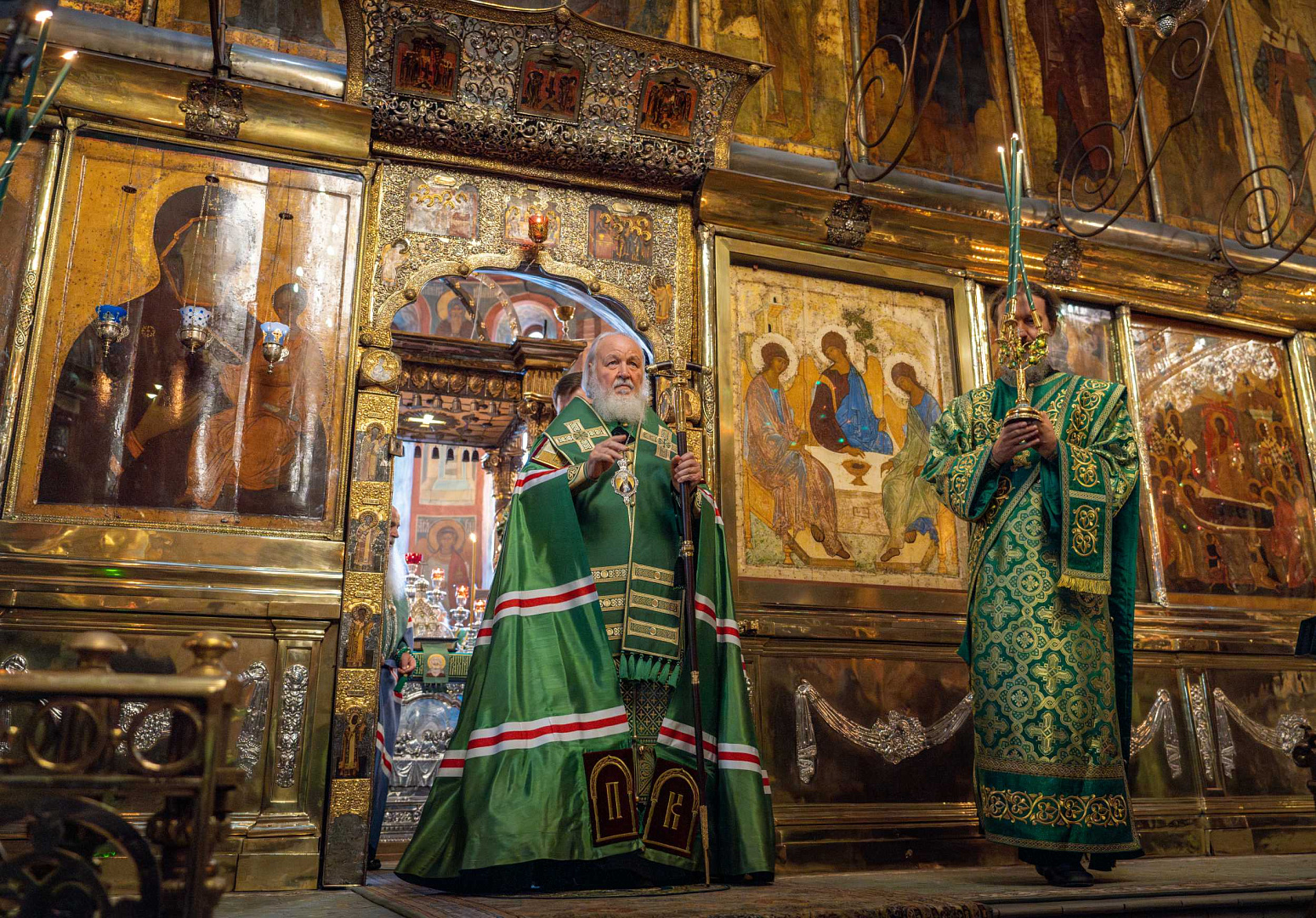 Святейший Владыка поклонился честным мощам преподобного Сергия Радонежского, а также иконе преподобного Андрея Рублева «Троица».