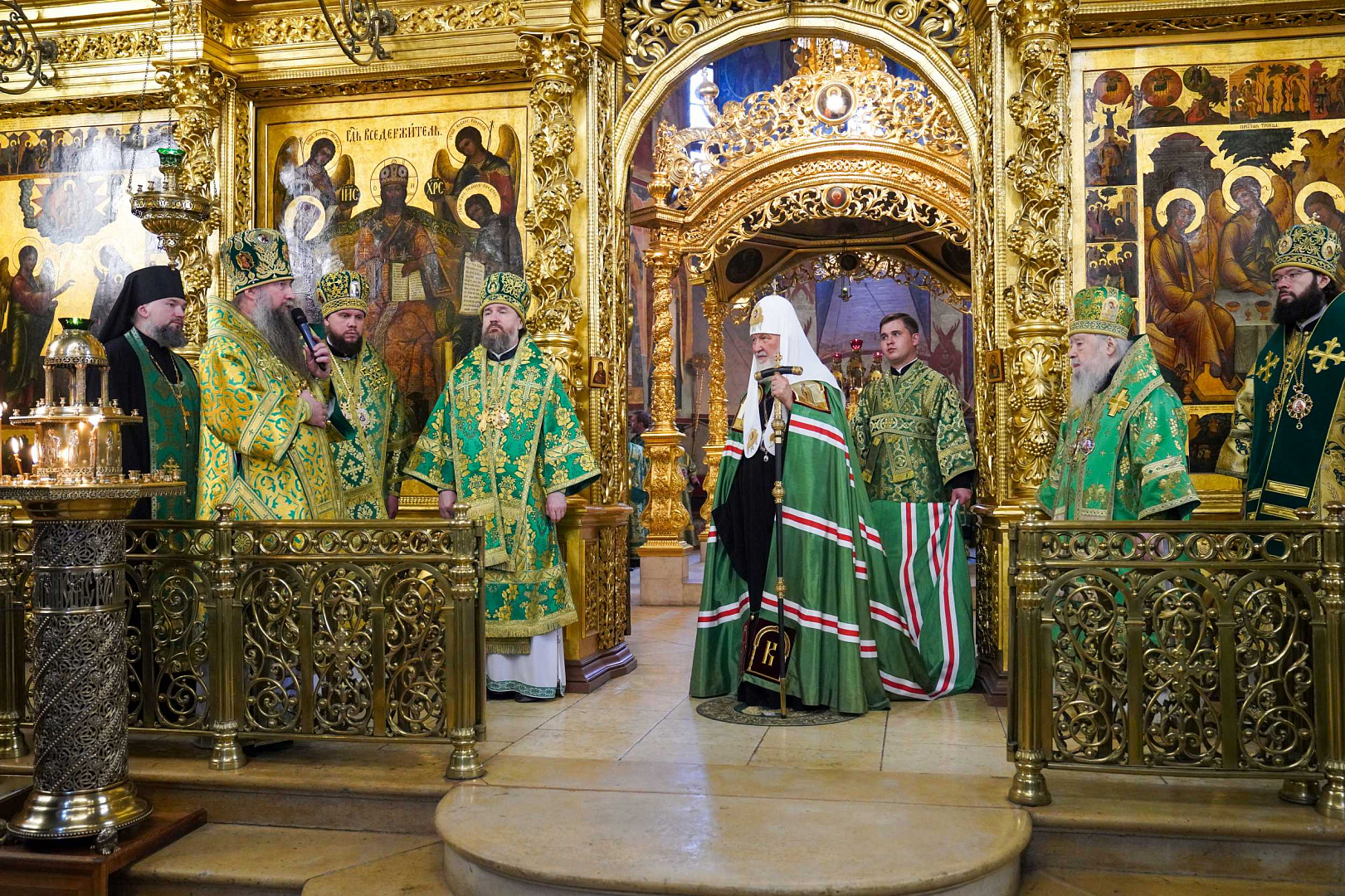 На сугубой ектении были вознесены особые прошения, Предстоятель Русской Церкви прочитал молитву о Святой Руси.