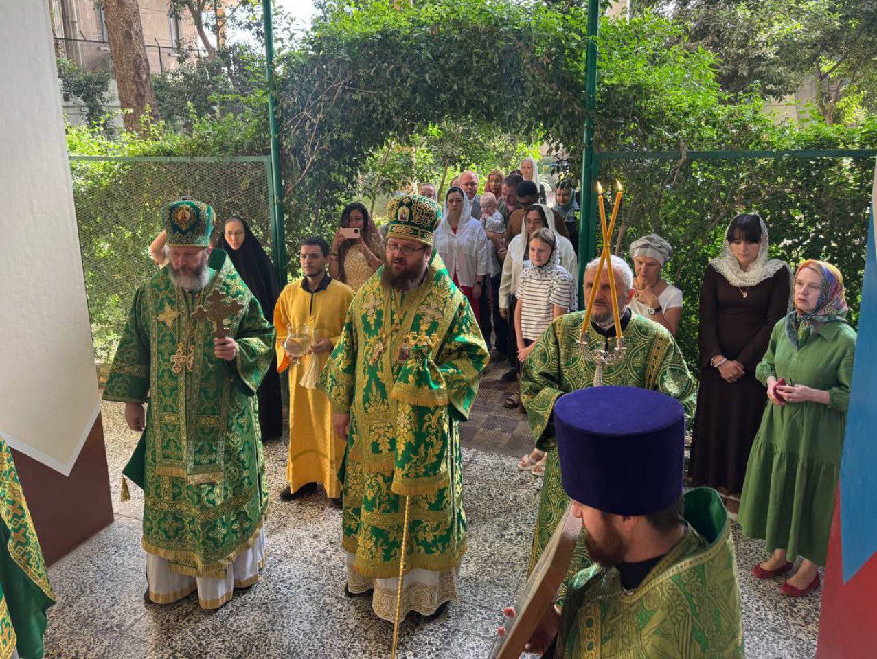 За Литургией митрополиту Константину сослужили викарий Патриаршего экзархата Африки и благочинный Египетского церковного округа епископ Луховицкий Евфимий, настоятель прихода святых Жен-мироносиц в Хургаде протоиерей Алексий Машков и клирик Сергиевского храма в Каире иерей Димитрий Гуров.