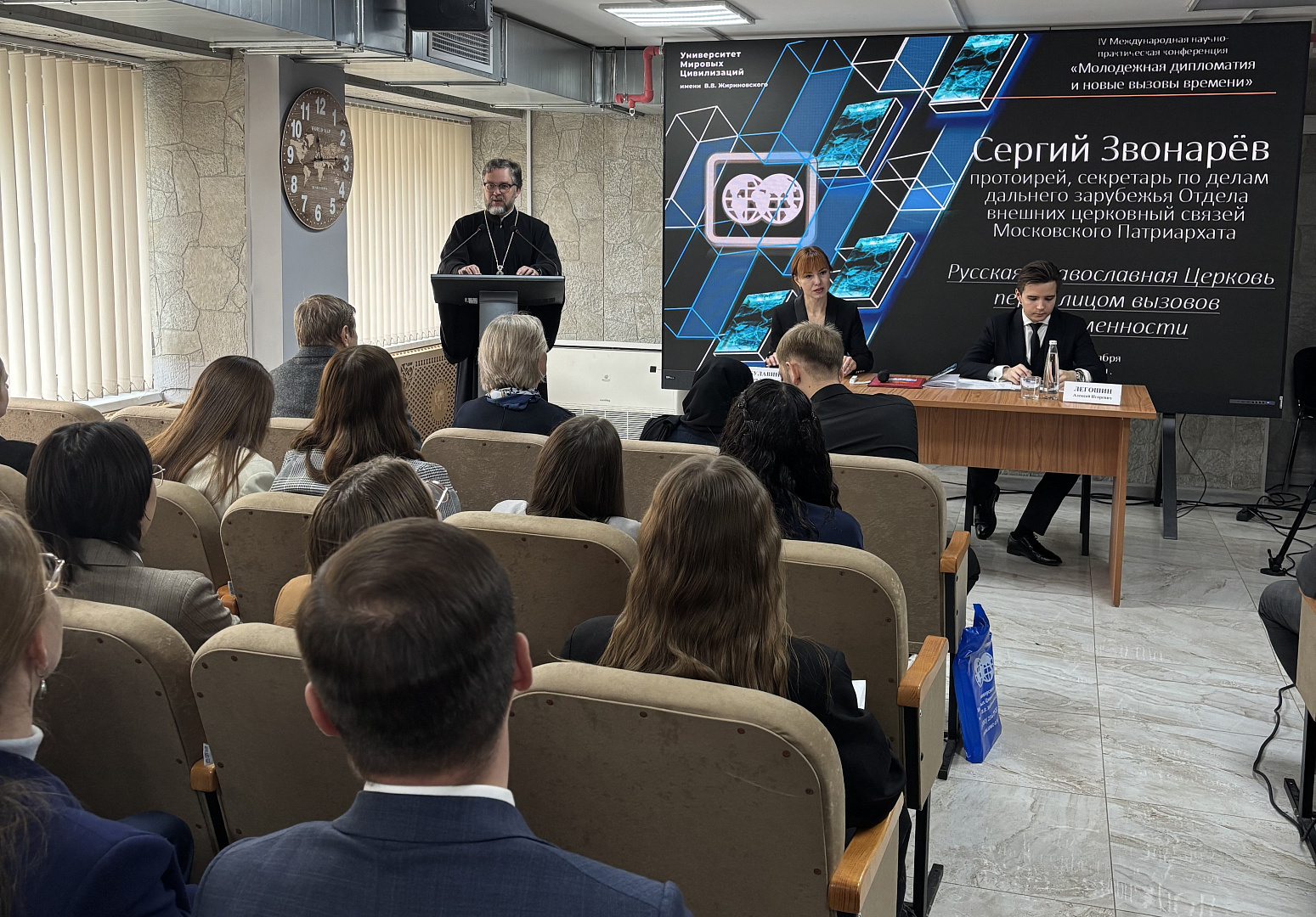 Служба коммуникации ОВЦС, 09.10.2025. 9 октября 2025 года в Университете мировых цивилизаций имени В.В. Жириновского в Москве состоялось открытие IV Международной научно-практической конференции на тему «Молодёжная дипломатия и новые вызовы времени». Организаторами форума выступили Университет мировых цивилизаций и Международный общественный Фонд «Российский фонд мира».