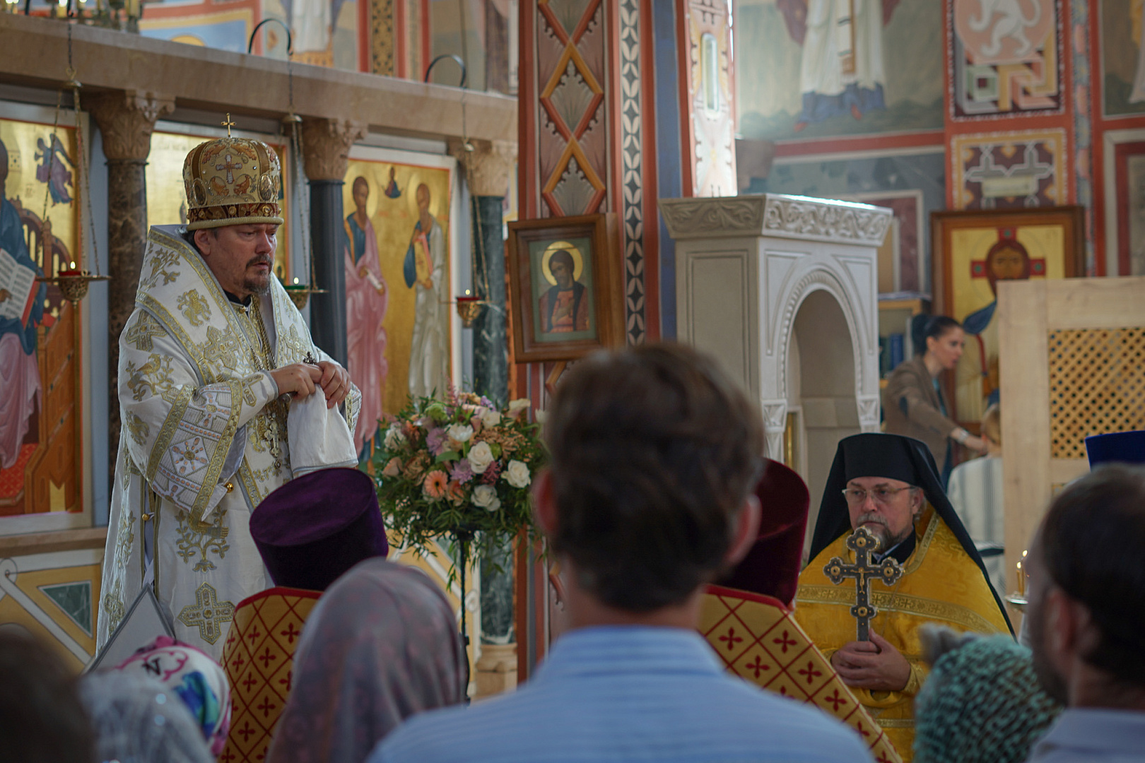 После отпуста Патриарший экзарх обратился к собравшимся в храме с проповедью.