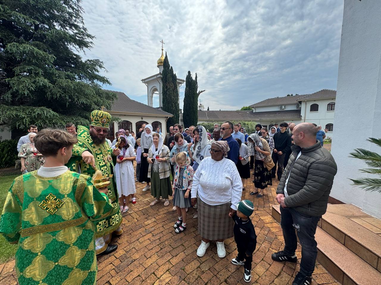 Владыке Константину сослужили благочинный Южноафриканского церковного округа и настоятель Сергиевского кафедрального собора протоиерей Даниил Луговой и клирик собора диакон Стефан Хейз.