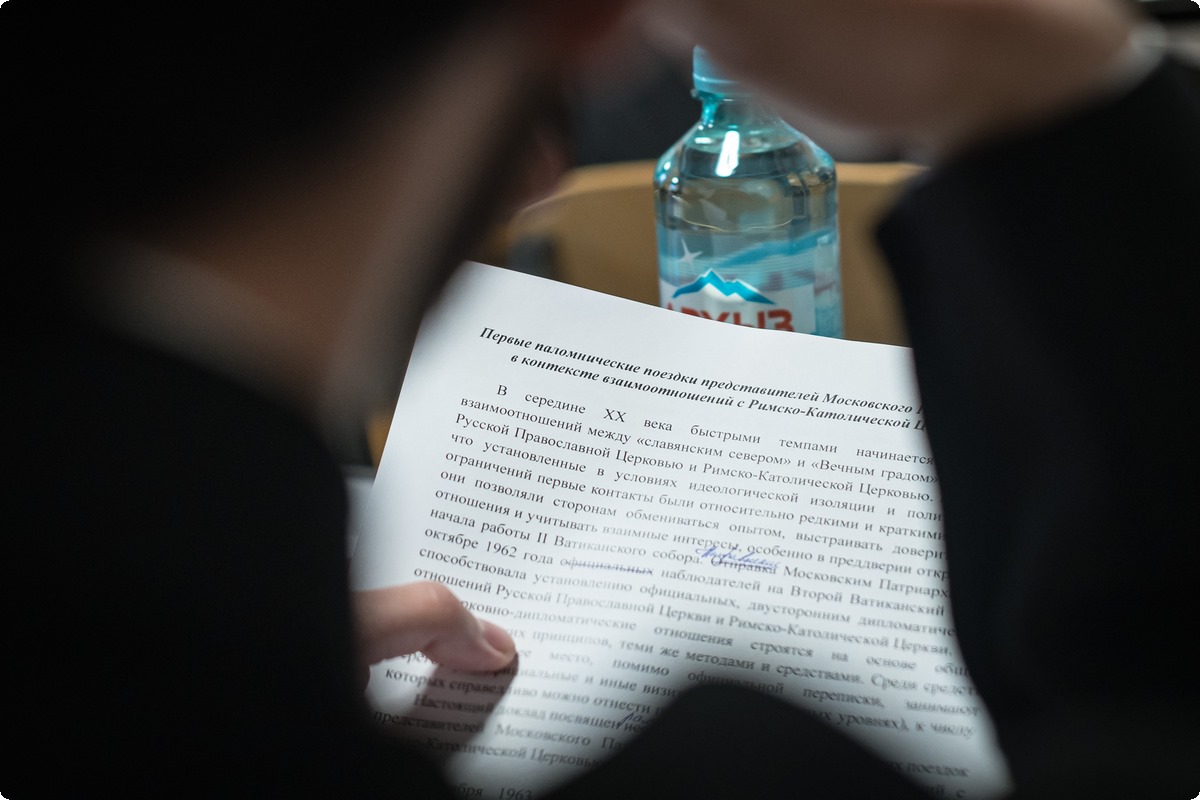 С докладом о первых паломнических поездках представителей Московского Патриархата в контексте взаимоотношений с Римско-Католической Церковью во второй половине XX века выступил референт Секретариата по межхристианским отношениям ОВЦС и магистрант Московской духовной академии Р.О. Обросов.