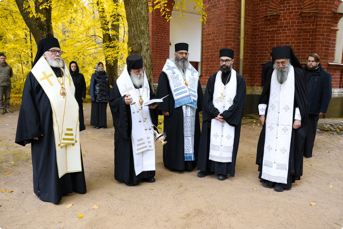 Затем гости проследовали на Игуменское кладбище, где архиереи совершили заупокойную литию у могилы приснопамятного насельника Валаамского монастыря, уроженца Северной Македонии – архимандрита Мефодия (Петрова).