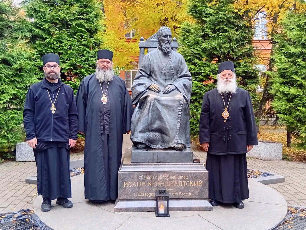 Митрополит Преспанско-Пелагонийский Петр, епископ Величский Николай и иеромонах Афанасий (Арсоский) также побывали в Кронштадте в мемориальной квартире святого праведного Иоанна Кронштадтского.