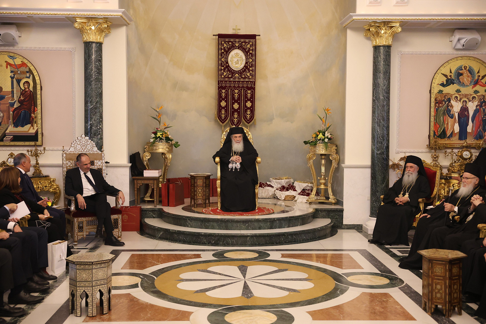 На приеме в Тронном зале Иерусалимской Патриархии присутствовали министр иностранных дел Греции Георгиос Герапетритис, генеральный секретарь по делам религий Греции Георгиос Каланзис, заместитель министра культуры Кипра Элени Кассианиду, генеральный консул Греции в Иерусалиме Димитриос Ангелосопулос, послы и представители Арабской Республики Египет, Иорданского Хашимитского Королевства, Латинского Патриархата, Кустодии Святой Земли и Армянского Патриархата, члены дипломатического корпуса, аккредитованного в Иерусалиме, и многочисленные гости.