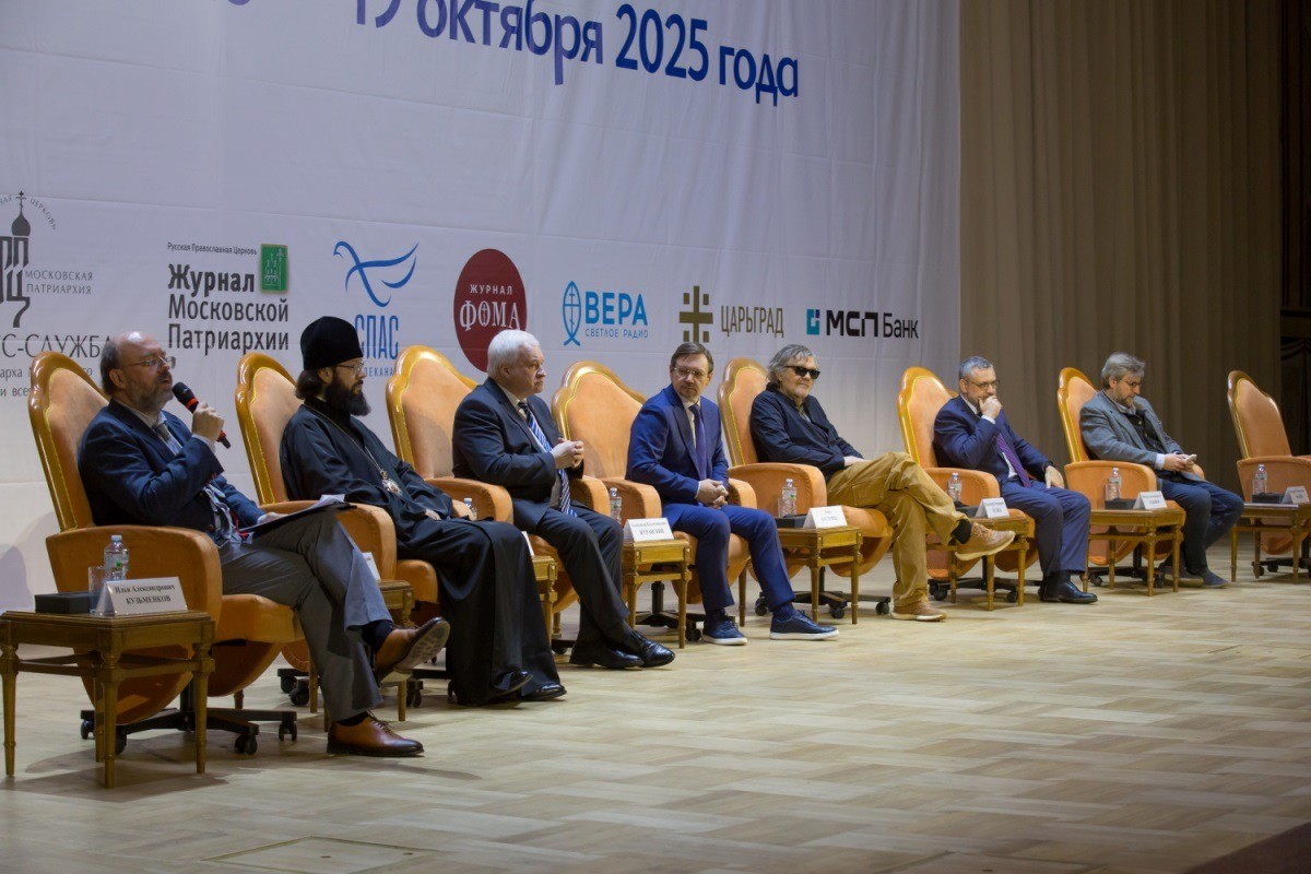 Служба коммуникации ОВЦС, 20.10.2025. 16 октября 2025 года в рамках XI Международного фестиваля православных СМИ «Вера и слово», который проходит по благословению Святейшего Патриарха Московского и всея Руси Кирилла, в Зале церковных соборов Храма Христа Спасителя в Москве состоялось первое тематическое мероприятие фестиваля – панельная дискуссия «Новый мир и христианская цивилизация».