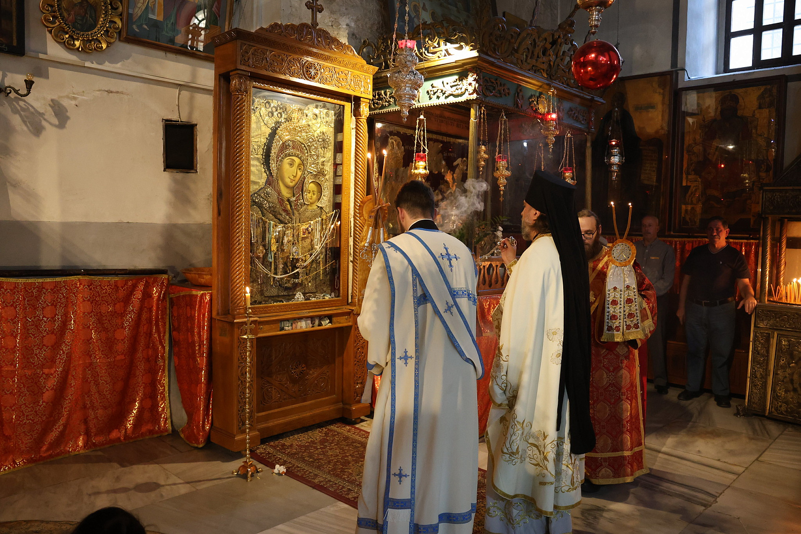Служба коммуникации ОВЦС, 26.10.2025. 26 октября, в Неделю 20-ю по Пятидесятнице, день памяти святых отцов VII Вселенского Собора и празднования в честь Иверской иконы Божией Матери, патриарший эпитроп Вифлеема митрополит Диокесарийский Венедикт (Иерусалимский Патриархат) совершил Божественную литургию в базилике Рождества Христова в Вифлееме.