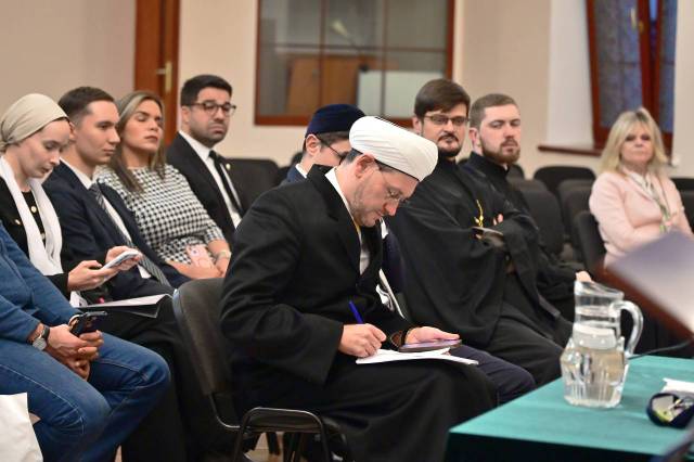 С докладами выступили Апостольский нунций в Российской Федерации архиепископ Джованни Д'Аниелло, генеральный викарий архиепархии Божией Матери в Москве священник Кирилл Горбунов и первый заместитель председателя Духовного управления мусульман Российской Федерации Дамир-хазрат Мухетдинов.