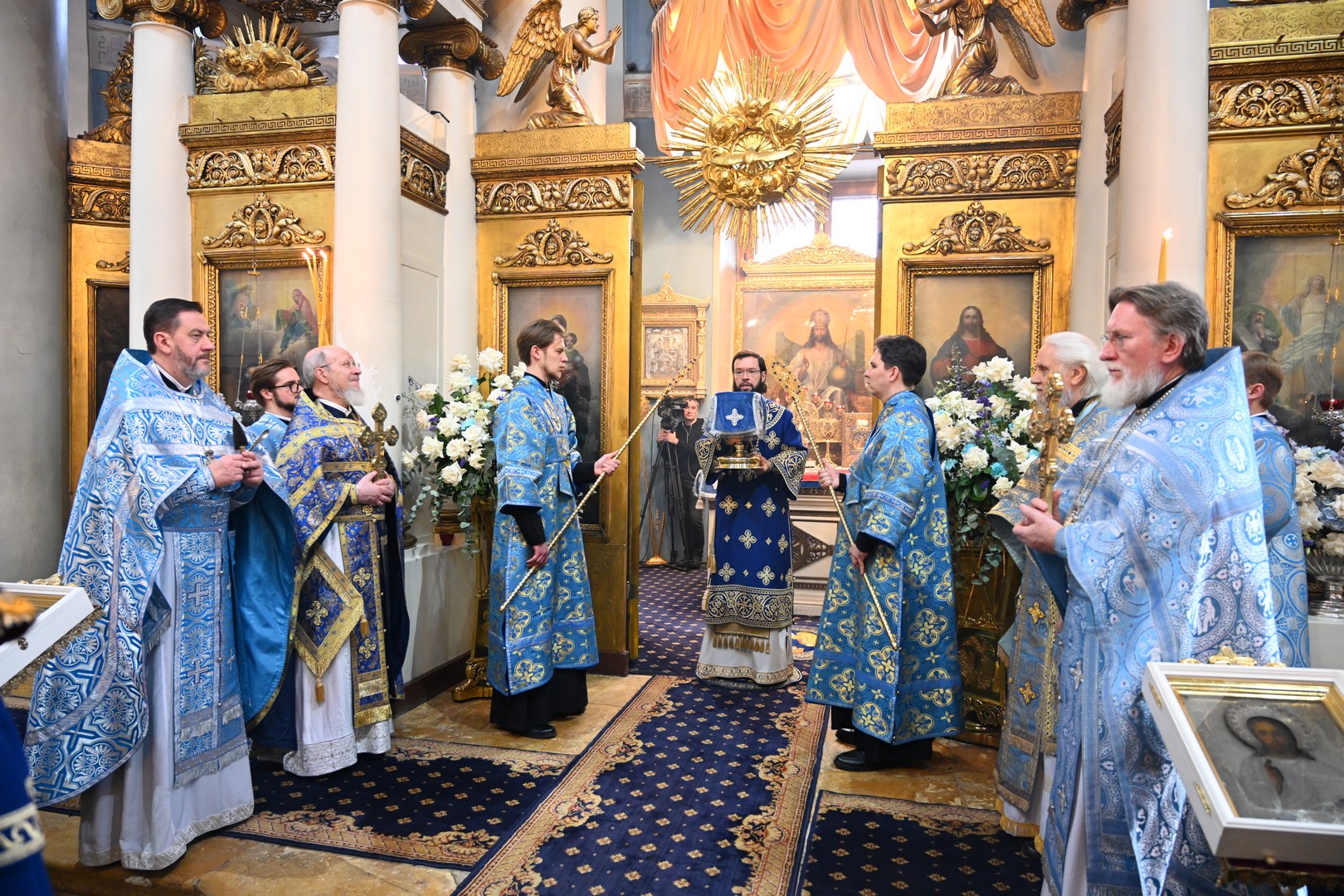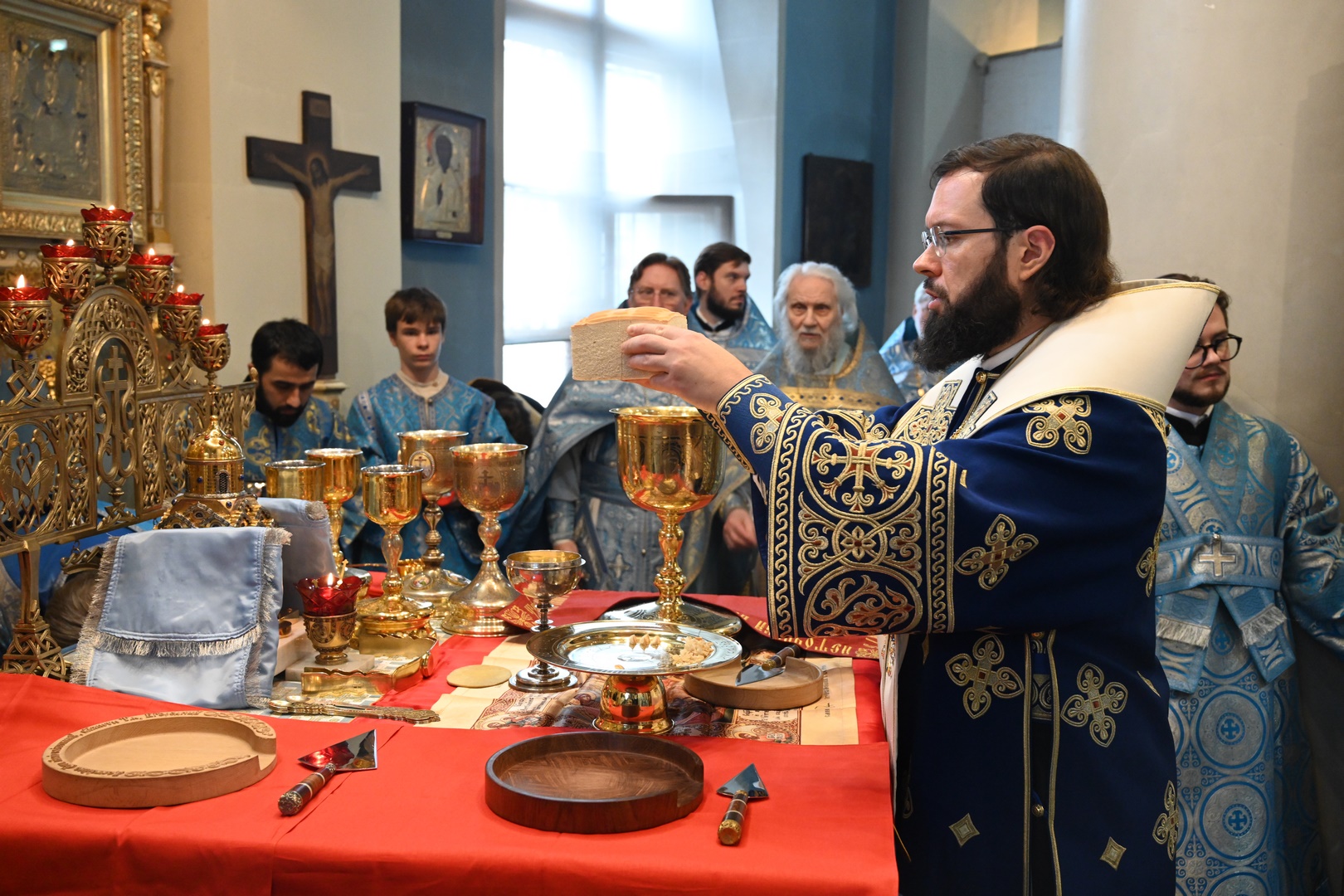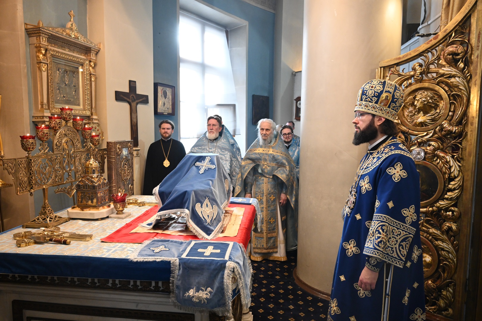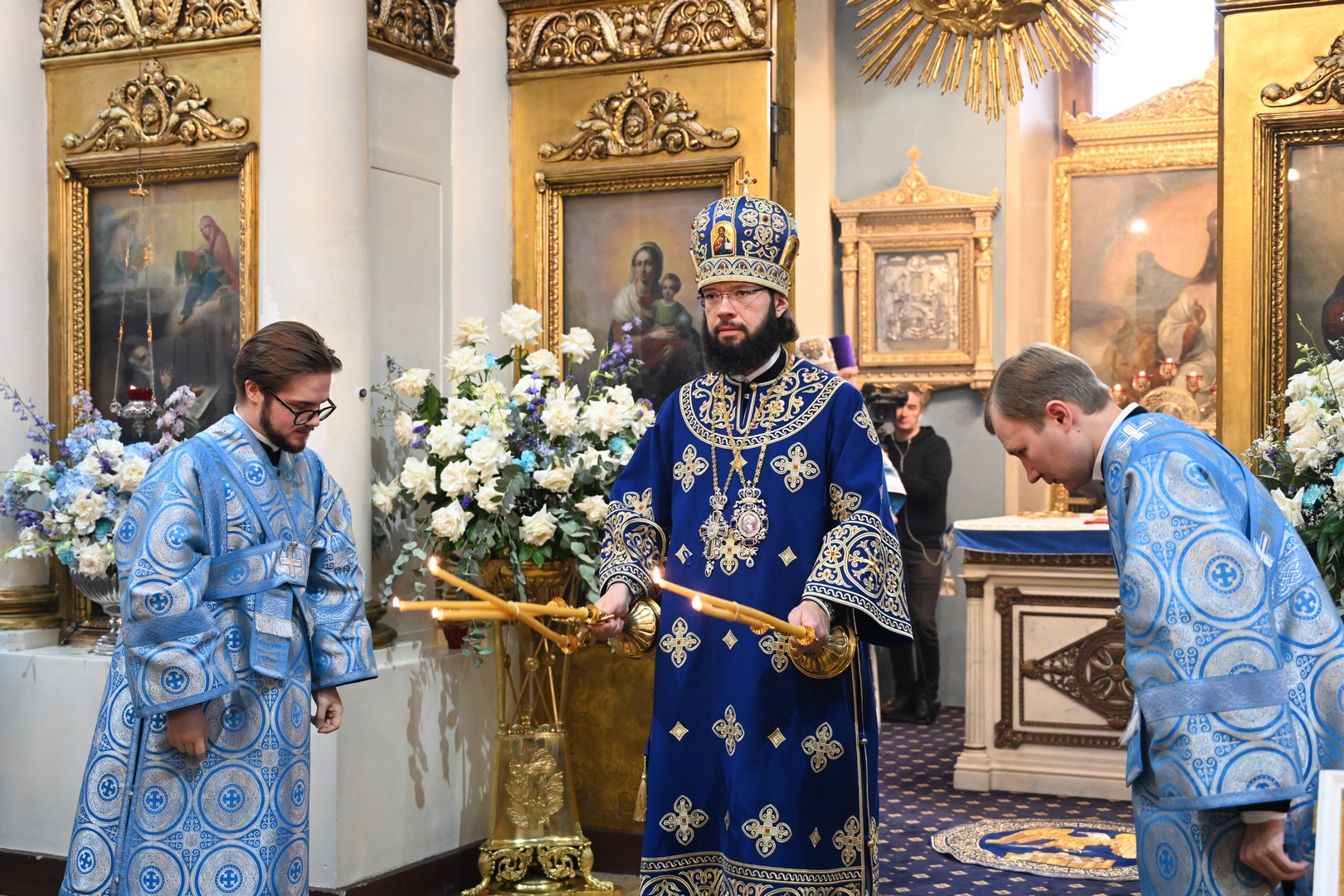 Архипастырю сослужили: секретарь Патриарха Московского и всея Руси по г. Москве, настоятель храма Вознесения Господня у Никитских ворот (Большое Вознесение) протопресвитер Владимир Диваков; советник Патриарха Московского и всея Руси, настоятель храма Воскресения Словущего на Успенском вражке протоиерей Николай Балашов; заместитель председателя ОВЦС, настоятель храма в честь иконы Божией Матери «Всех скорбящих Радость» на Большой Ордынке протоиерей Игорь Выжанов; благочинный Москворецкого церковного округа г. Москвы, настоятель храма Архангела Михаила в Овчинниках протоиерей Сергий Селезнев; сотрудник Службы протокола Патриарха Московского и всея Руси иеромонах Александр (Серпенинов), клирики храма.