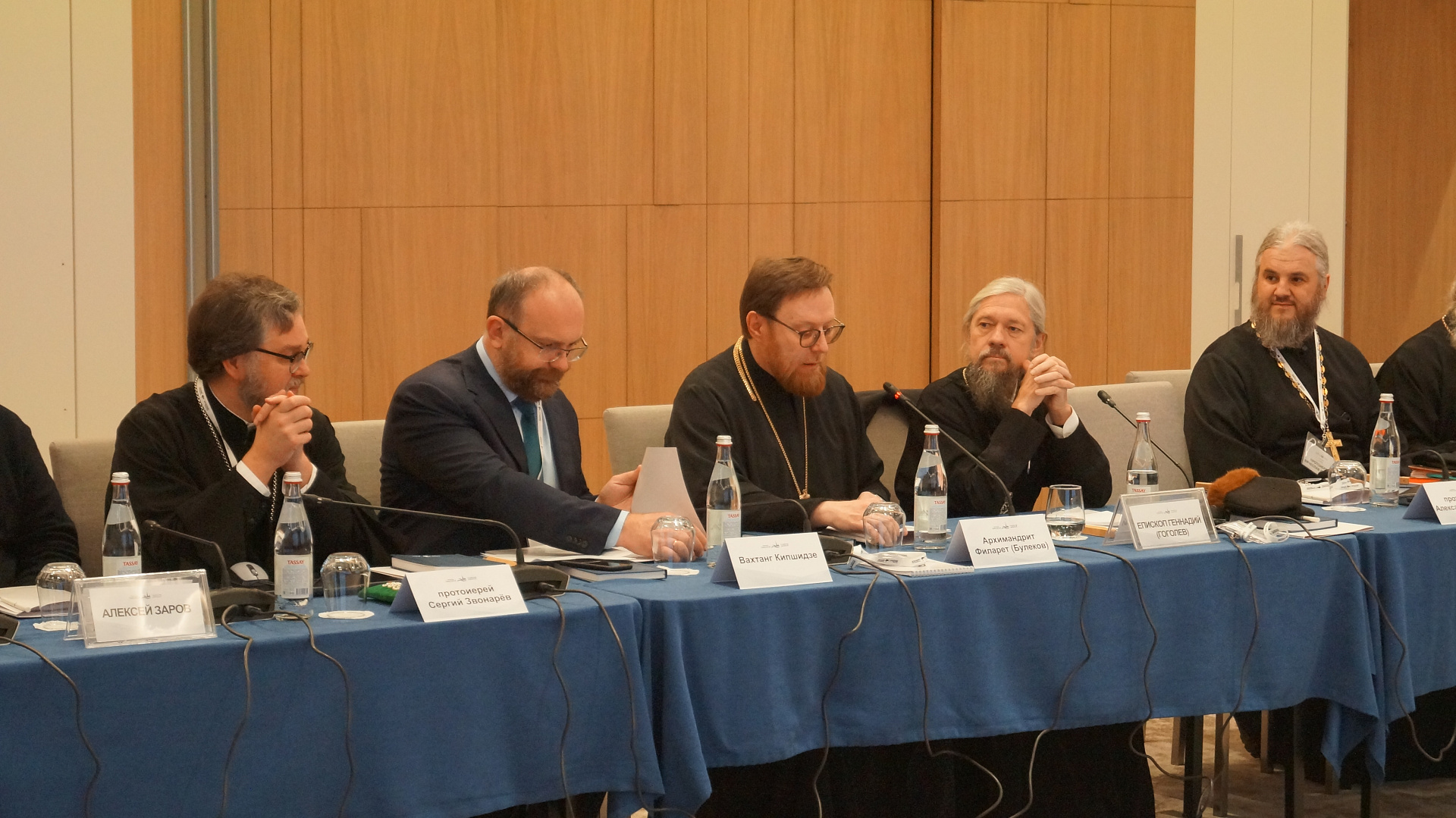 Модератором встречи выступил заместитель председателя Синодального отдела по взаимоотношениям Церкви с обществом и СМИ В.В. Кипшидзе.