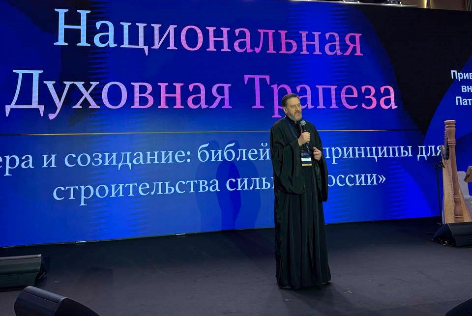 Служба коммуникации ОВЦС, 11.11.2025. 11 ноября 2025 года заместитель председателя Отдела внешних церковных связей Московского Патриархата протоиерей Игорь Выжанов принял участие в ежегодной встрече проекта «Национальная духовная трапеза», проходившей в московской гостинице «Хайатт Редженси».