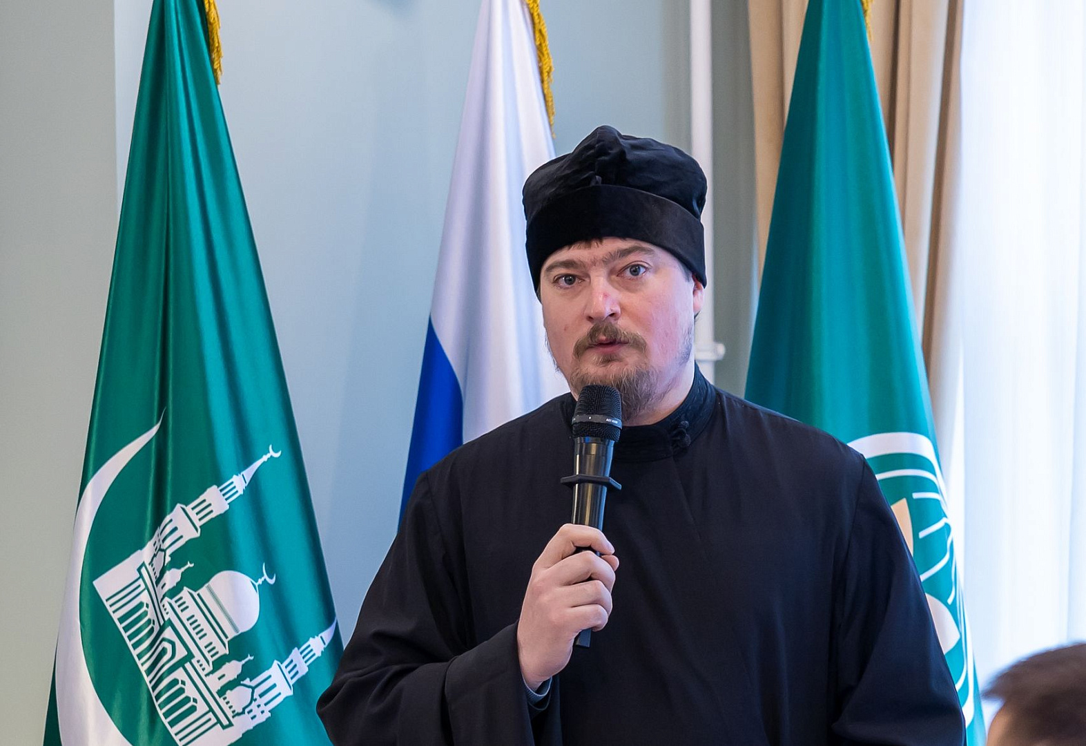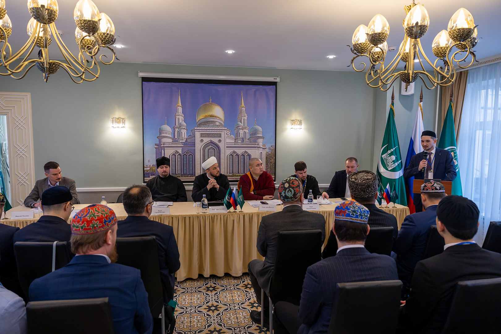 Открыл заседание заместитель председателя Духовного управления мусульман Российской Федерации по делам образования и науки, проректор Московского исламского института Ренат Ислямов. С приветственными словами к участникам обратились: советник Управления по связям с религиозными организациями Правительства Москвы Николай Мазунин; заместитель директора Фонда поддержки исламской культуры, науки и образования Алексей Петров; сотрудник Секретариата по межрелигиозным отношениям Отдела внешних церковных связей Московского Патриархата диакон Сергий Нестеров; председатель Центрального духовного управления буддистов России, член Общественной палаты РФ Геше лама Йонтен; представители протестантских общин пасторы Дмитрий Таранов и Евгений Раскатов; ректор Карачаево-Черкесского исламского института имени Имама Абу-Ханифы Ахмат Каитов; руководитель Центра содействия укреплению традиционных ценностей Вадим Квятковский.