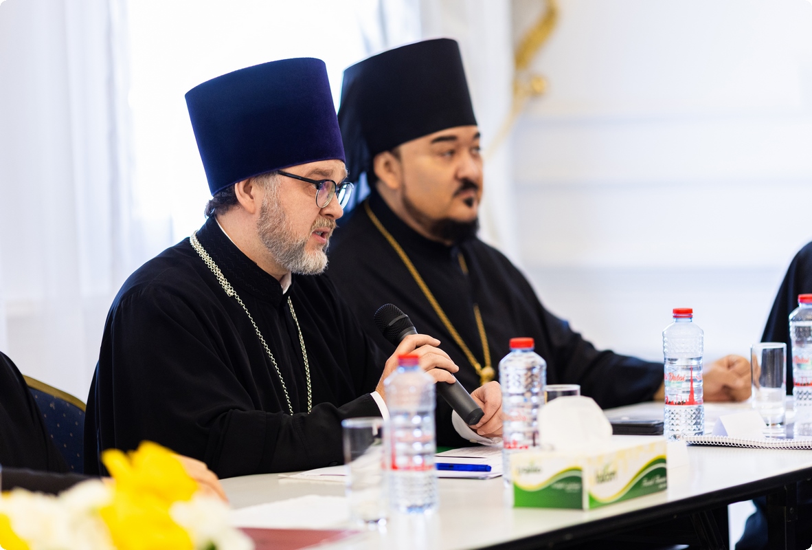 В ходе заседаний также прозвучали выступления Чрезвычайного и Полномочного посла Российской Федерации в Объединенных Арабских Эмиратах Т.Ф. Забирова, Патриаршего экзарха Африки митрополита Каирского и Северо-Африканского Константина, викария Патриаршего экзархата Африки епископа Луховицкого Евфимия, директора Департамента по работе с соотечественниками за рубежом Министерства иностранных дел России Г.А. Овечко, специального представителя министра иностранных дел Российской Федерации по вопросам международного сотрудничества в области обеспечения права на свободу вероисповедания М.М. Мелеха, председателя Всемирного координационного совета российских соотечественников, проживающих за рубежом М.В. Дроздова, заместителя руководителя Департамента внешнеэкономических и международных связей города Москвы И.П. Ткача, настоятеля храма святого апостола Филиппа в Шардже (ОАЭ) архимандрита Александра (Заркешева), представителя Патриарха Московского и всея Руси при Антиохийском Патриаршем престоле архимандрита Филиппа (Васильцева), начальника Русской духовной миссии в Иерусалиме архимандрита Вассиана (Змеева), настоятеля Сергиевского кафедрального собора Южно-Африканской епархии в г. Йоханнесбург (ЮАР) протоиерея Даниила Лугового, настоятеля храма Воскресения Христова в г. Тунис протоиерея Димитрия Нецветаева, настоятеля храма святителя и чудотворца Николая в Лимасоле (Кипр) протоиерея Павла Поваляева, настоятеля прихода святых Жен-мироносиц в Хургаде (Египет) протоиерея Алексия Машкова, настоятеля Воскресенского храма в столице Марокко протоиерея Максима Массалитина, ответственного за организацию окормления паствы Московского Патриархата на территории Турецкой Республики священника Георгия Сергеева, окормляющего общину Русской Православной Церкви на атомной станции Аккую (Турция) иеромонаха Палладия (Быстрова), председателя Координационного совета организаций российских соотечественников в ОАЭ Е.Г. Тариловой.