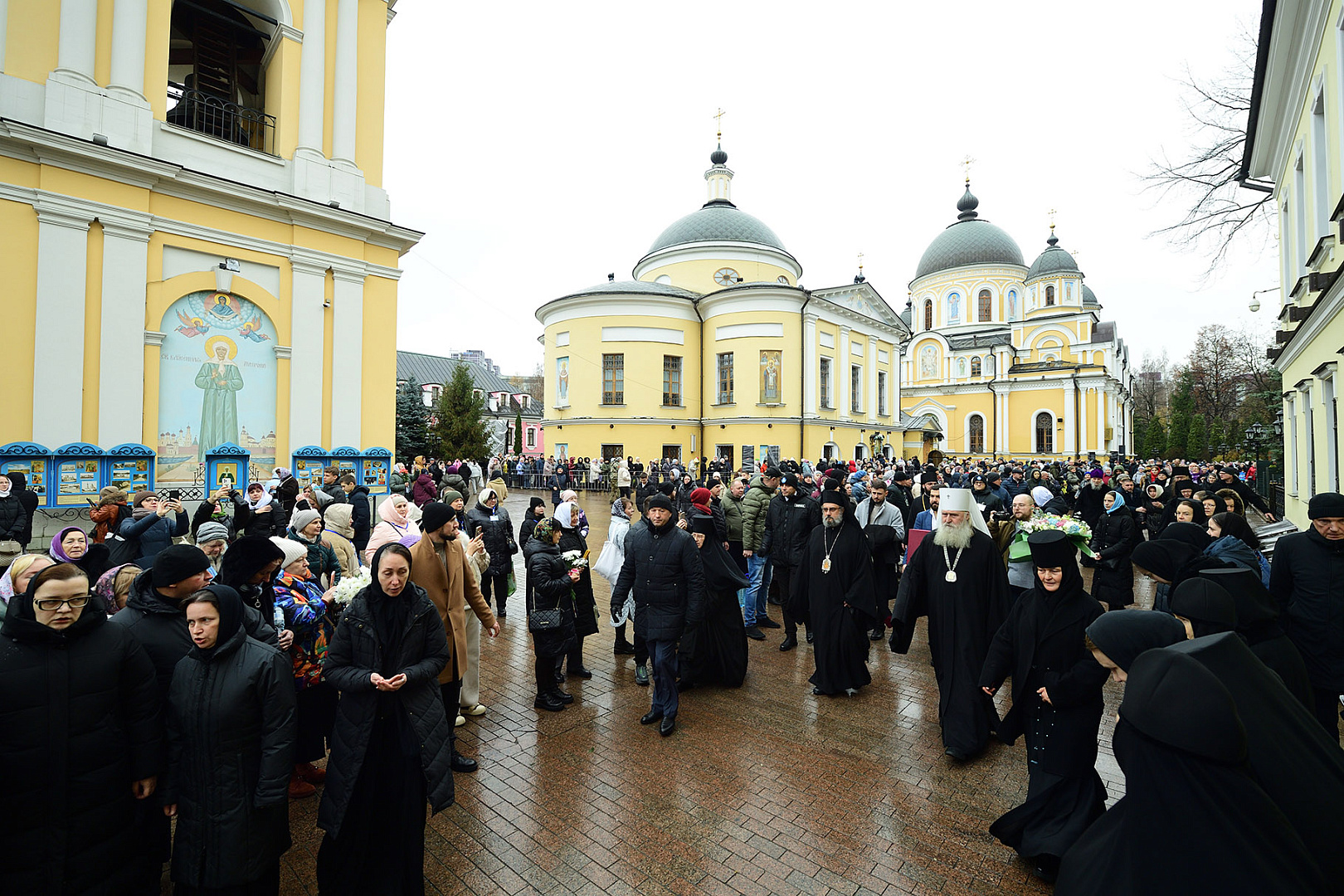 За Божественной литургией в монастырском храме Воскресения Словущего архипастырям сослужили секретарь Патриарха Московского и всея Руси по г. Москве протопресвитер Владимир Диваков, благочинный Покровского церковного округа г. Москвы протоиерей Олег Егоров, заместитель председателя Синодального отдела по монастырям и монашеству, наместник Саввино-Сторожевского ставропигиального мужского монастыря архимандрит Стефан (Тараканов), духовенство Покровской обители.