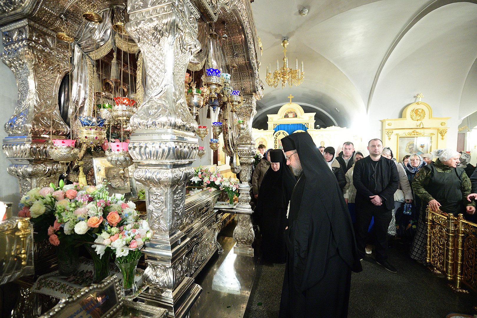 По прибытии в обитель архипастыри поклонились честным мощам блаженной Матроны Московской, почивающим в Покровском храме.