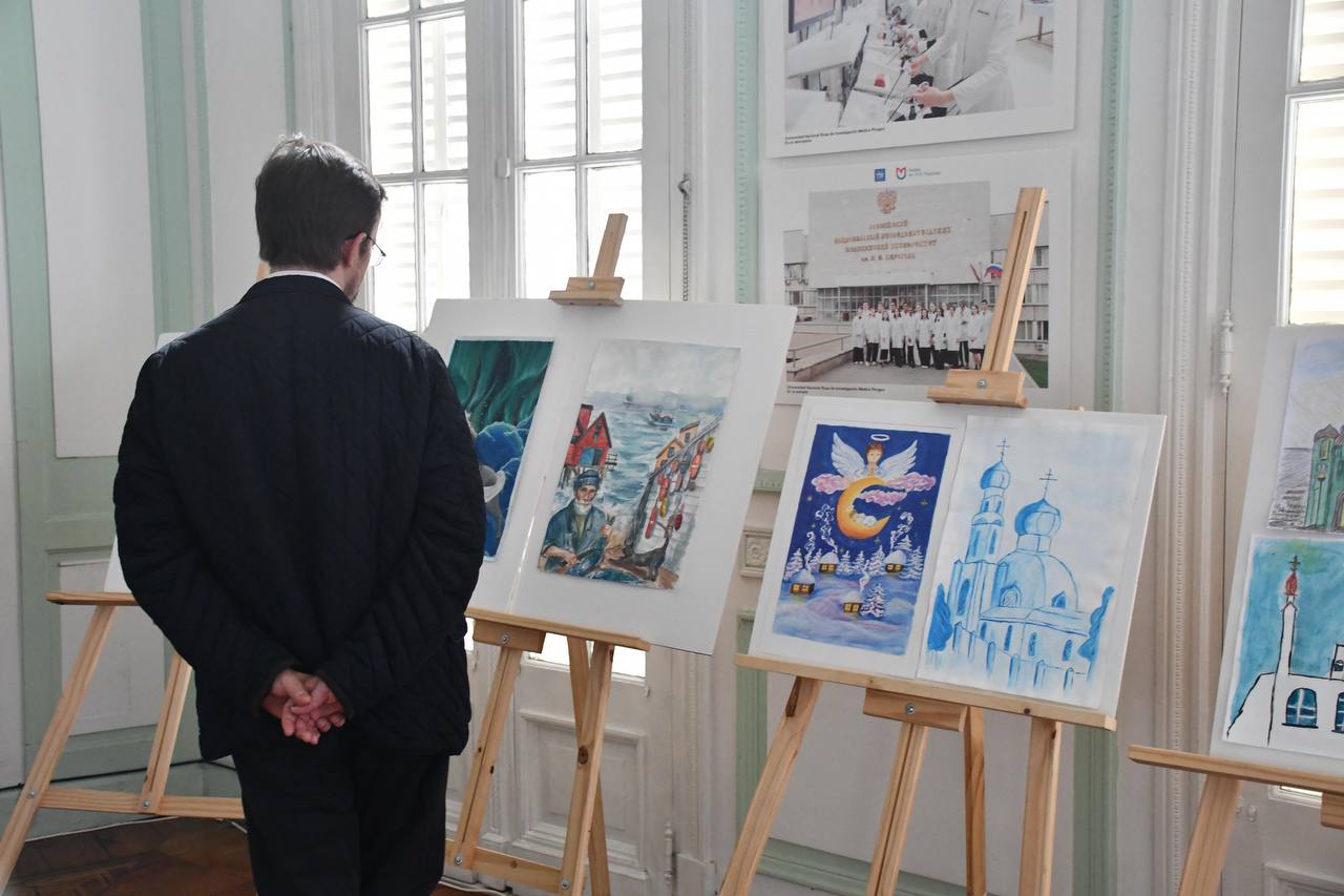 После официальной части гости ознакомились с выставкой работ победителей и участников международного конкурса детского творчества «Красота Божьего мира».