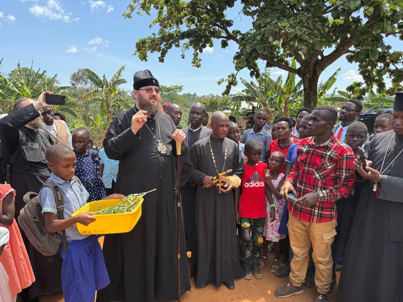 На богослужении молились прихожане и воспитанники школы, действующей на приходе. Литургия совершалась на английском, луганда и церковнославянском языках.