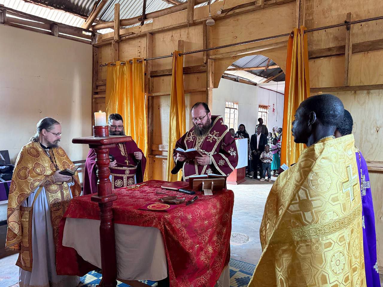 Архипастырю сослужили председатель Миссионерского отдела Патриаршего экзархата Африки иерей Георгий Максимов, благочинный округа иеромонах Силуан (Браун), благочинный приходов Южно-Африканской епархии в Руанде иерей Петр Бикамумпака, клирик Успенского прихода в Руанде иерей Дамиан Душимимана и клирики Восточного благочиния Уганды.
