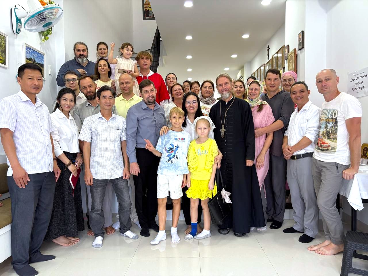 Служба коммуникации ОВЦС, 22.12.2025. 21 декабря, в Неделю 28-ю по Пятидесятнице, приход святителя Николая Чудотворца в городе Нячанг во Вьетнаме посетили представители Комитета по национальностям и религиям г. Ханоя и г. Нячанга, преподаватели религиоведения.