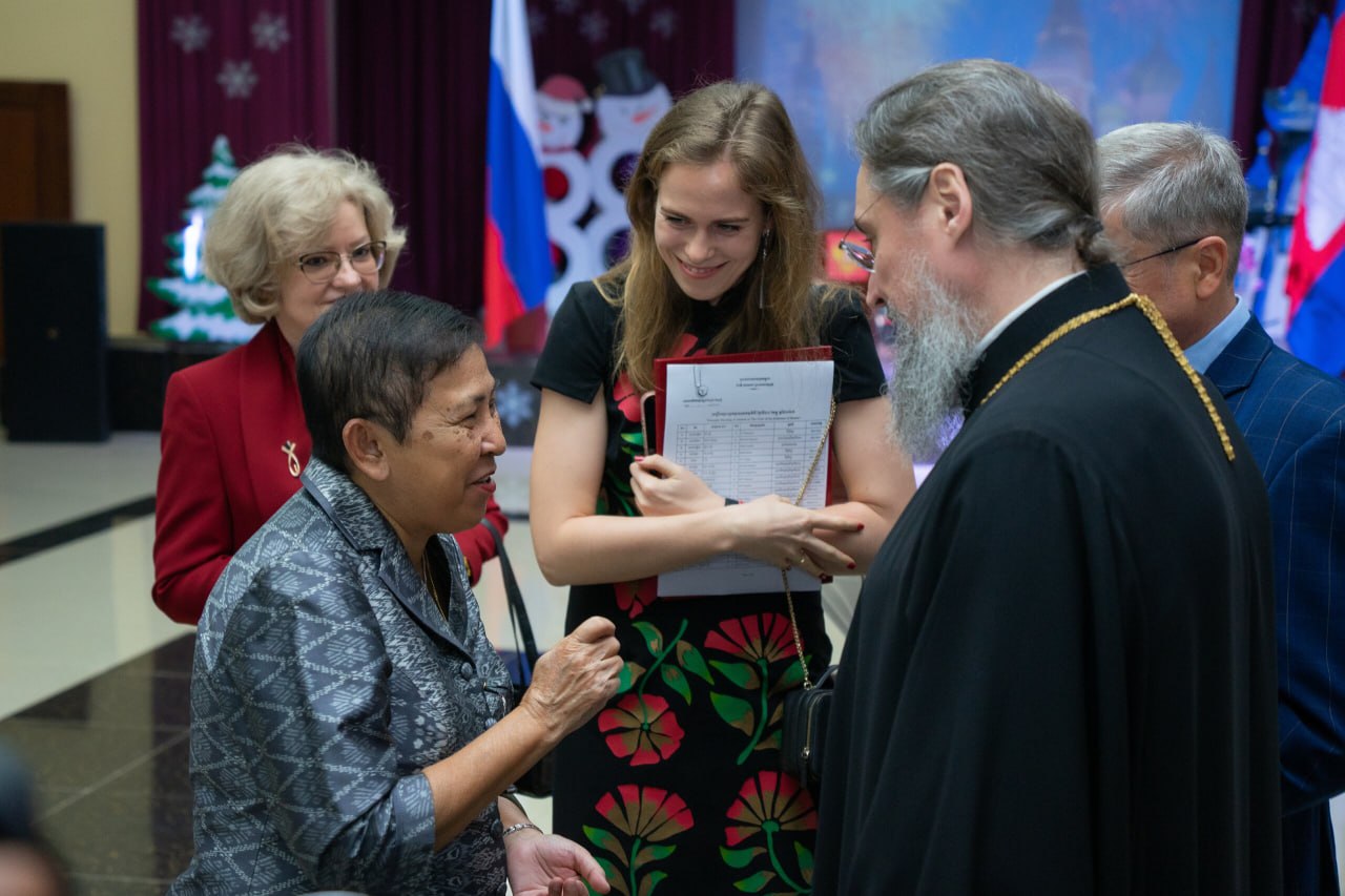 Служба коммуникации ОВЦС, 26.12.2025. 24 декабря 2025 года в Посольстве Российской Федерации в Королевстве Камбоджа прошла встреча выпускников высших учебных заведений СССР и России. В мероприятии принял участие Патриарший экзарх Юго-Восточной Азии митрополит Сингапурский и Юго-Восточно-Азиатский Сергий, временно управляющий Таиландской епархией, сообщает телеграм-канал экзархата.