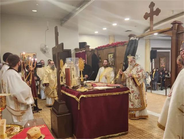 Богослужение возглавил Блаженнейший Патриарх Иоанн в сослужении главного секретаря Синода Антиохийской Православной Церкви епископа Селевкийского Романа, епископа Дарайского Моисея, епископа Иерапольского Арсения, архимандрита Павла (Ордулогло,) избранного и наречённого во епископа Тартусского, архимандрита Филиппа (Васильцева), архимандрита Парфения (Ал-Лати) и приходского духовенства, сообщает сайт Представительства Русской Православной Церкви в Дамаске.