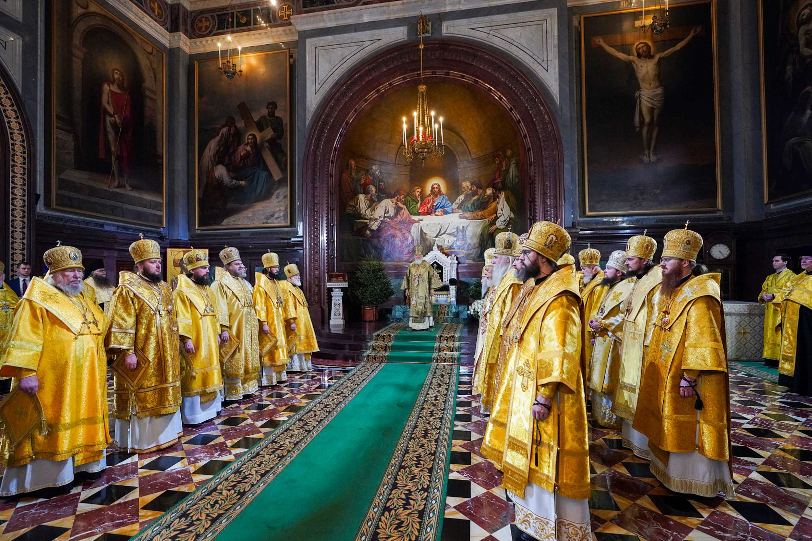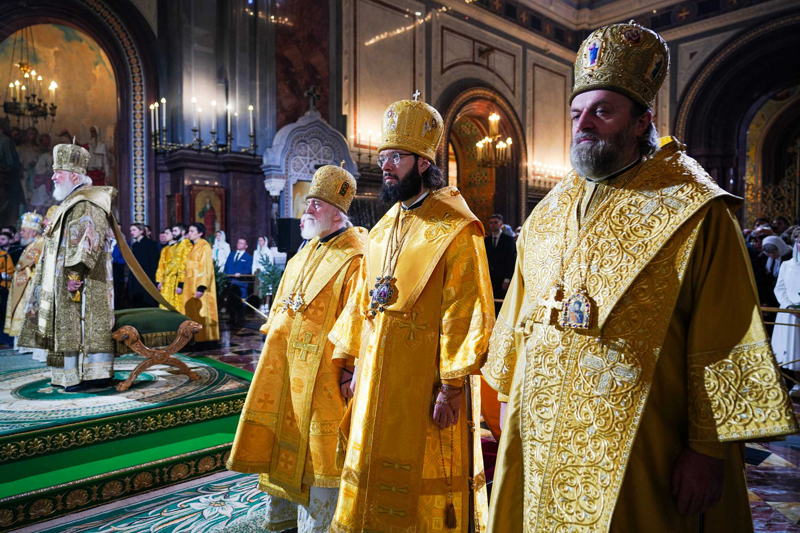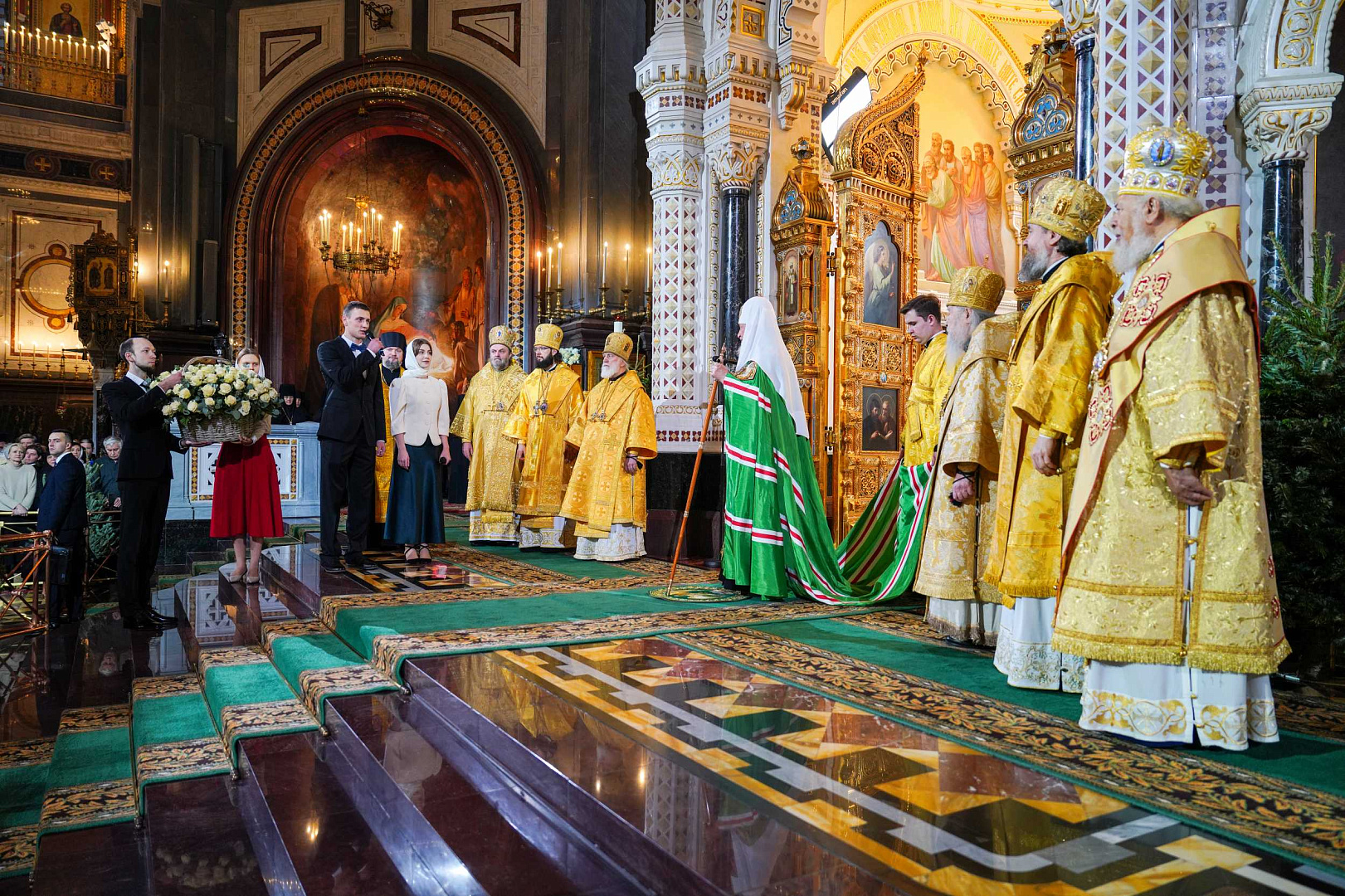 Его Святейшеству сослужили: митрополит Ювеналий (Поярков); митрополит Крутицкий и Коломенский Павел, Патриарший наместник Московской митрополии; митрополит Воскресенский Григорий, управляющий делами Московской Патриархии, первый викарий Патриарха Московского и всея Руси по г. Москве, наместник Новоспасского ставропигиального монастыря; митрополит Волоколамский Антоний, председатель Отдела внешних церковных связей; митрополит Каширский Феогност, председатель Синодального отдела по монастырям и монашеству, наместник Донского ставропигиального монастыря; митрополит Звенигородский Арсений; архиепископ Одинцовский и Красногорский Фома, руководитель Административного секретариата Московской Патриархии; архиепископ Подольский и Люберецкий Аксий; архиепископ Зеленоградский Савва, председатель Синодального миссионерского отдела, заместитель управляющего делами Московской Патриархии; епископ Гурий (Шалимов); епископ Серпуховской Роман, наместник Высоцкого ставропигиального монастыря; епископ Иероним (Чернышов); епископ Балашихинский и Орехово-Зуевский Николай, руководитель и главный редактор Издательства Московской Патриархии; епископ Павлово-Посадский Силуан, заместитель управляющего делами Московской Патриархии; епископ Истринский Серафим, председатель Синодального отдела по делам молодежи; епископ Сергиево-Посадский и Дмитровский Кирилл, наместник Свято-Троицкой Сергиевой лавры, ректор Московской духовной академии; епископ Раменский Алексий, личный секретарь Святейшего Патриарха Кирилла; епископ Егорьевский Мефодий, и.о. председателя Синодальной библейско-богословской комиссии, ректор Православного Свято-Тихоновского гуманитарного университета, наместник Николо-Угрешского ставропигиального монастыря; епископ Бронницкий Иоанн, наместник Высоко-Петровского ставропигиального монастыря; протопресвитер Владимир Диваков, секретарь Патриарха Московского и всея Руси по г. Москве; протоиерей Михаил Рязанцев, ключарь Храма Христа Спасителя; протоиерей Николай Балашов, советник Патриарха Московского и всея Руси; протоиерей Максим Козлов, председатель Учебного комитета Русской Православной Церкви; архимандрит Филарет (Булеков), заместитель председателя ОВЦС МП; протоиерей Игорь Якимчук, заместитель председателя ОВЦС МП; архимандрит Стефан (Тараканов), заместитель председателя Синодального отдела по монастырям и монашеству, наместник Саввино-Сторожевского ставропигиального монастыря; протоиерей Дионисий Казанцев, секретарь Патриарха Московского и всея Руси по Московской области; иерей Кирилл Марковский, председатель Синодального отдела по тюремному служению; иерей Василий Лосев, руководитель секретариата ВРНС, руководитель юридической службы Московской митрополии; благочинные г. Москвы и столичное духовенство.