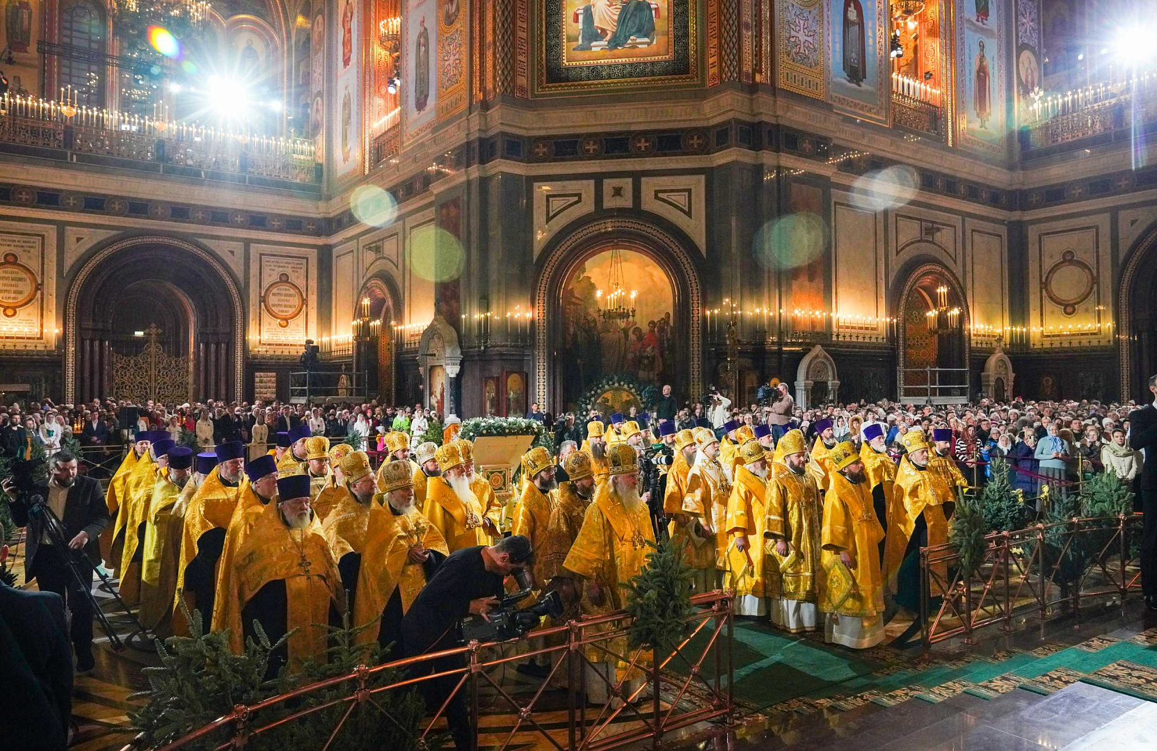 Служба коммуникации ОВЦС, 07.01.2026. Вечером 7 января 2026 года, в праздник Рождества Господа Бога и Спаса нашего Иисуса Христа, Святейший Патриарх Московский и всея Руси Кирилл совершил великую вечерню в кафедральном соборном Храме Христа Спасителя в Москве.