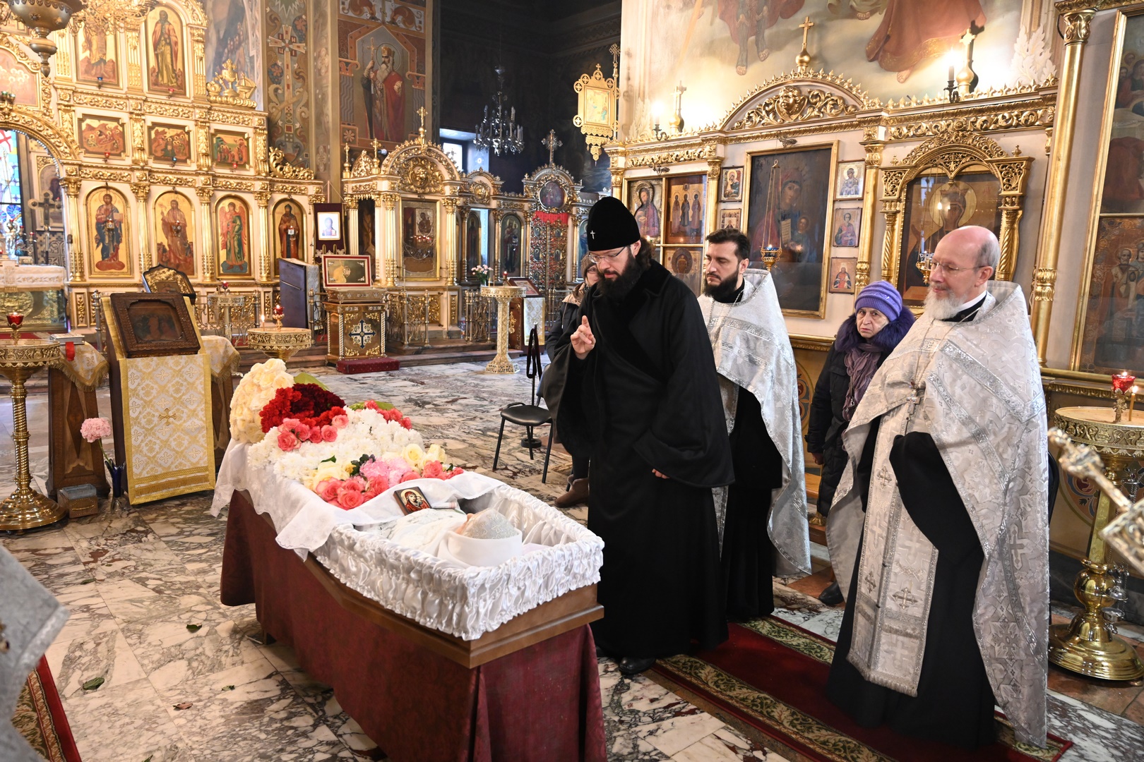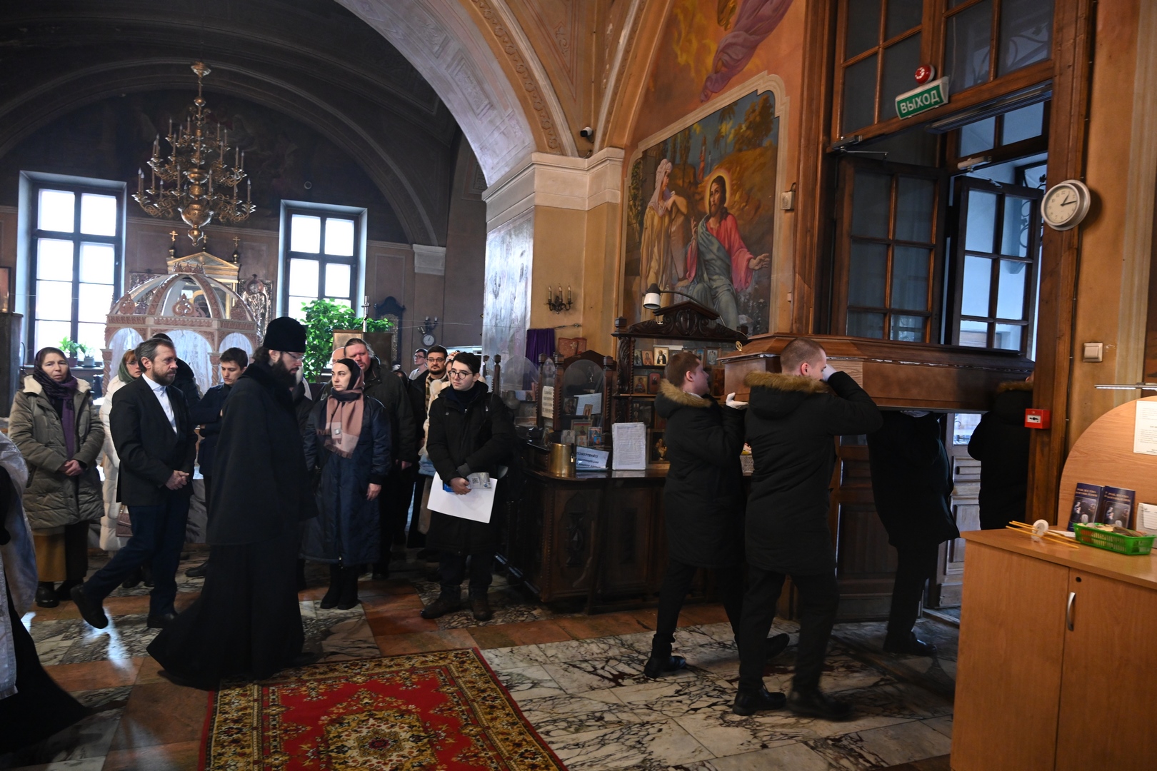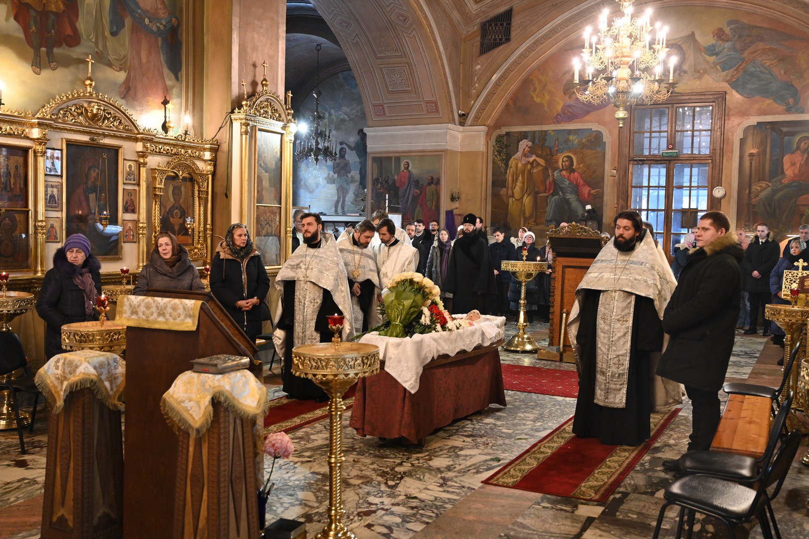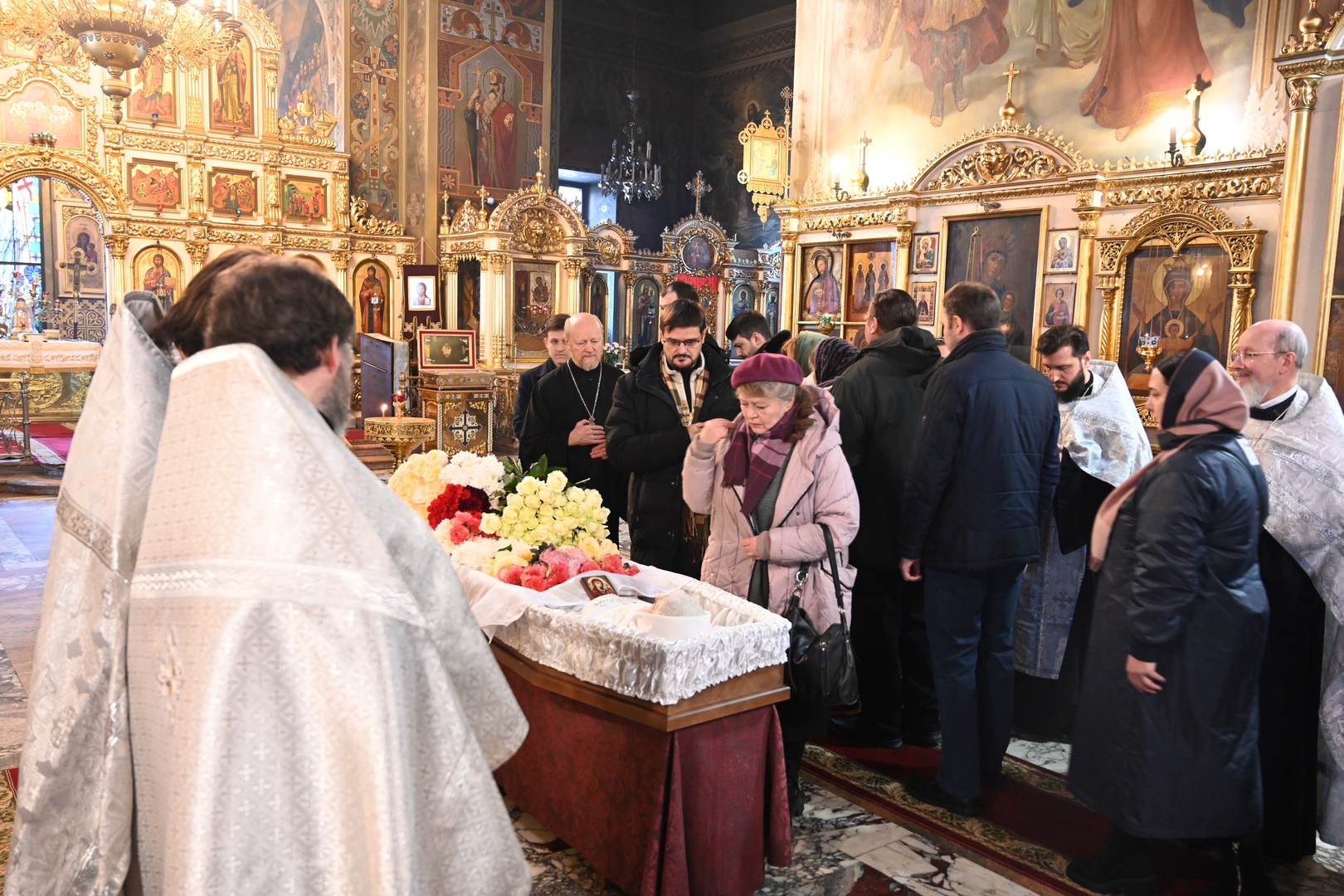 Поминальную службу возглавил заместитель председателя ОВЦС протоиерей Игорь Якимчук, которому сослужили советник Патриарха Московского и всея Руси протоиерей Николай Балашов, секретарь ОВЦС по делам дальнего зарубежья протоиерей Сергий Звонарёв, сотрудники ОВЦС иеромонах Кирилл (Перегудин), иеромонах Марк (Ахматханов), диакон Сергий Монахов.
