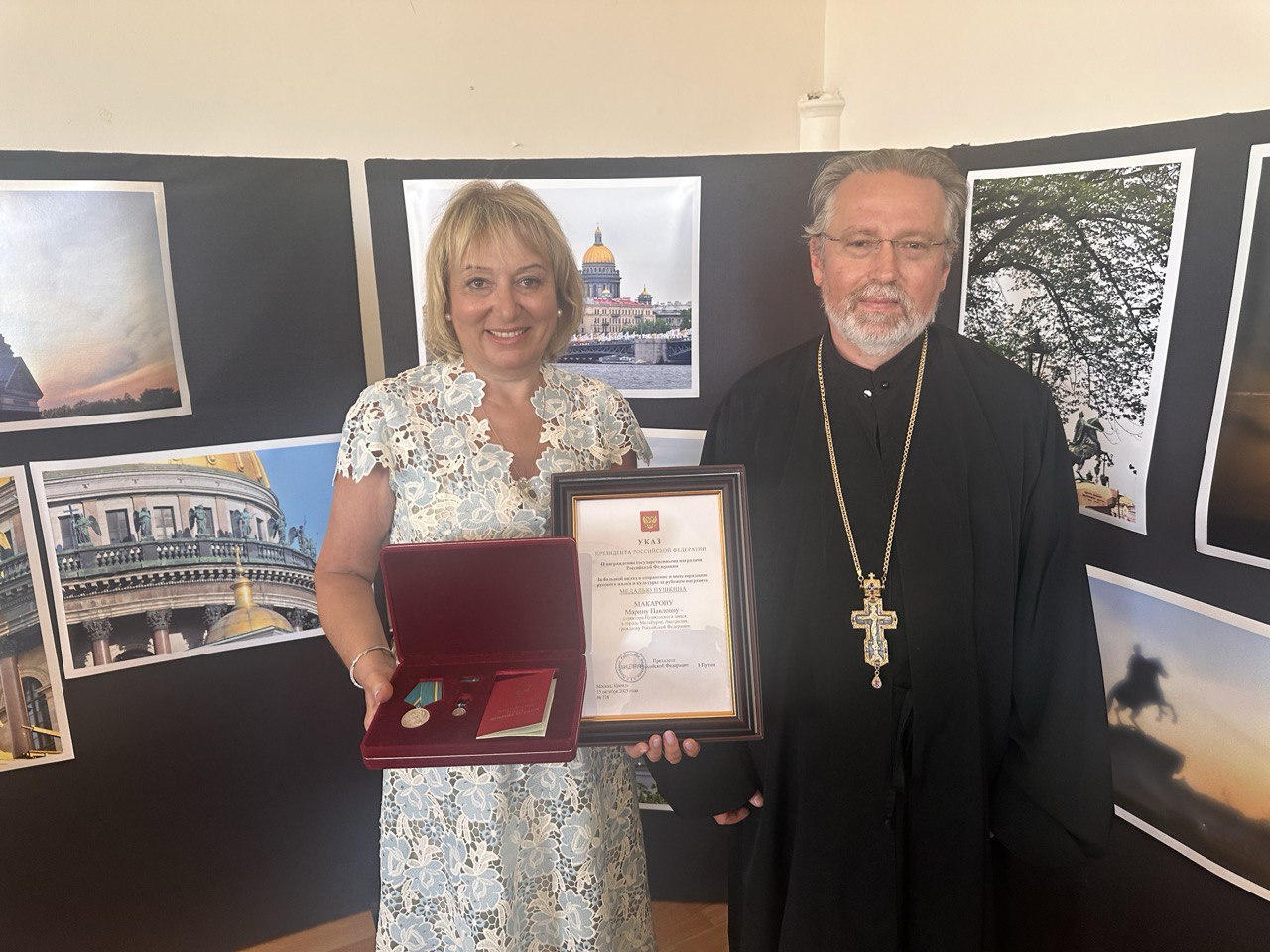 Служба коммуникации ОВЦС, 18.01.2025.18 января 2026 года в здании Русского дома г. Мельбурна Чрезвычайный и Полномочный посол Российской Федерации в Австралии М.И. Петраков вручил прихожанке ставропигиального Свято-Троицкого прихода Московского Патриархата Мельбурна, директору мельбурнской школы «Пушкинский лицей» М.П. Макаровой российскую государственную награду – медаль А.С. Пушкина.