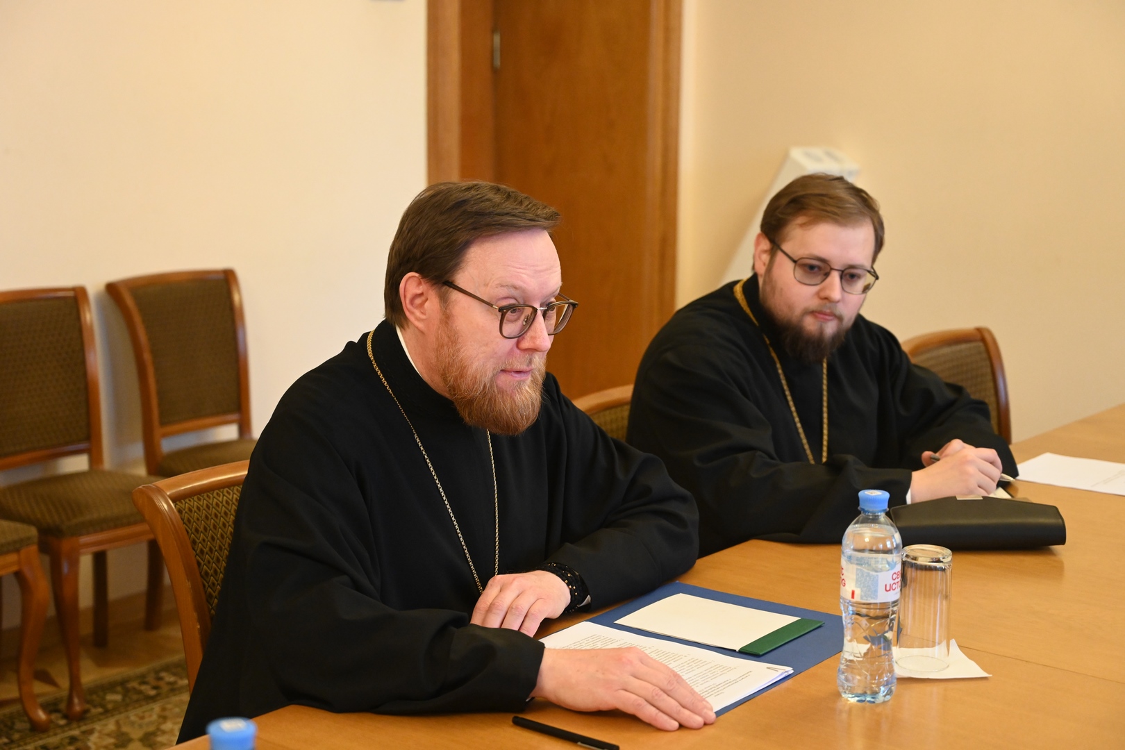 Архимандрит Филарет приветствовал гостей в стенах Отдела и ознакомил их с различными аспектами внешней деятельности Русской Православной Церкви.