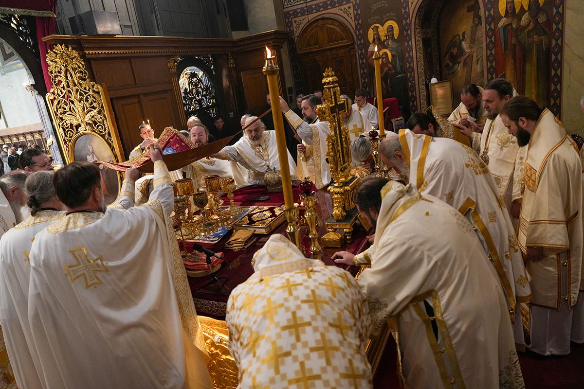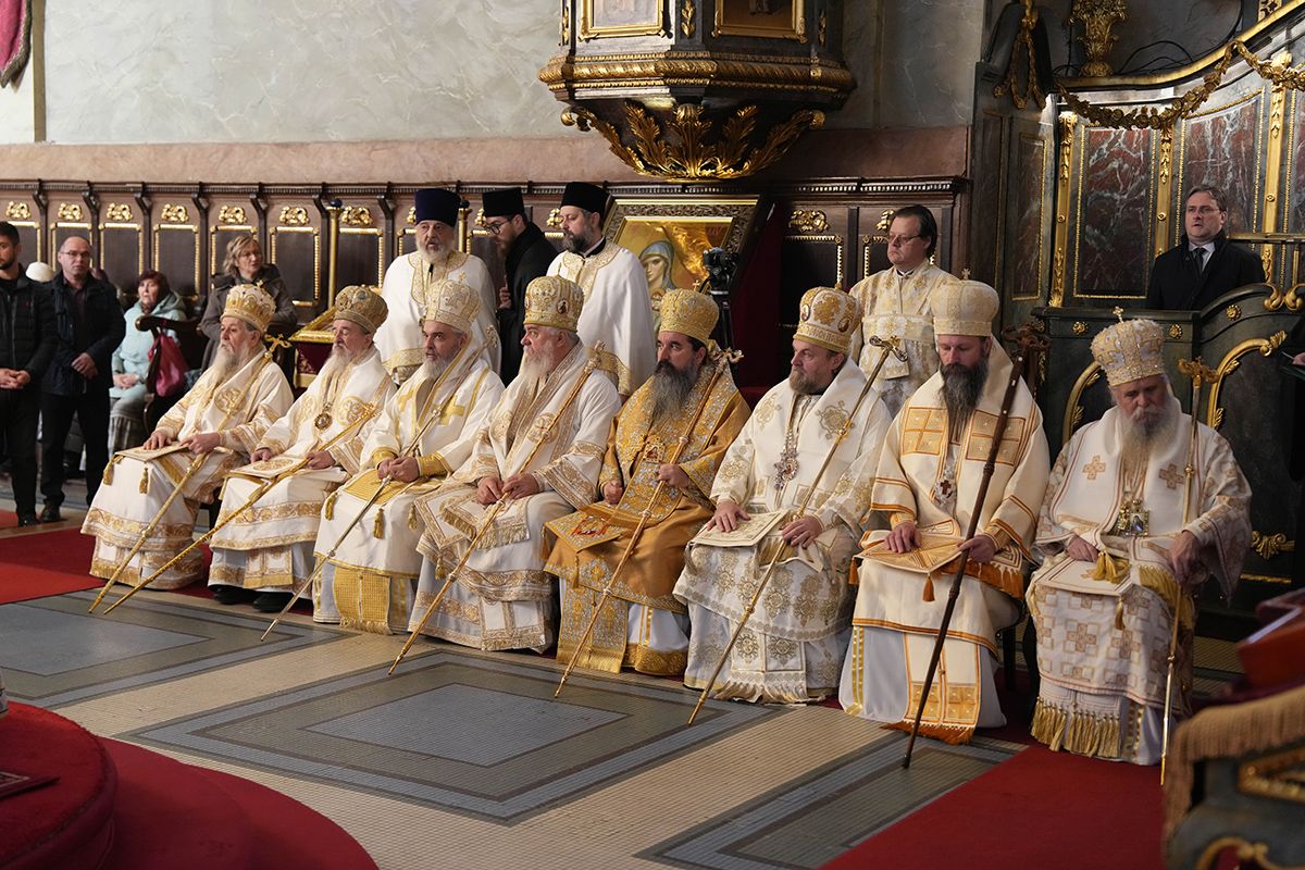 Предстоятелю Сербской Православной Церкви сослужили митрополиты Черногорско-Приморский Иоанникий, Враньский Пахомий, Шумадийский Иоанн, Милешевский Афанасий, Нишский Арсений, Далматинский Никодим и Будимлянско-Никшичский Мефодий, епископы Буэнос-Айресский, Южно- и Центральноамериканский Кирилл, Осечкопольский и Бараньский Херувим, Шабацкий Иерофей, Лондонский и Великобританско-Ирландский Нектарий, викарии Святейшего Патриарха Сербского епископы Ремезиянский Стефан, настоятель Подворья Сербской Православной Церкви в Москве, Хвостанский Алексий, Топлицкий Петр и Енопольский Никон, а также викарий Рашско-Призренской епархии епископ Новобрдский Иларион. Молитвенное участие в богослужении приняли митрополит Браничевский Игнатий, а также Патриаршие викарные епископы Липлянский Досифей и Моравичский Тихон.