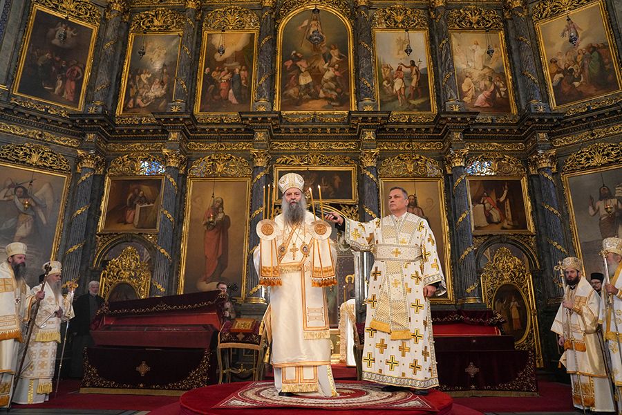 Служба коммуникации ОВЦС, 29.01.2026. 20 января, в праздник Собора святого славного пророка, Предтечи и Крестителя Господня Иоанна, Сербская Православная Церковь торжественно отметила Крестную славу Святейшего Патриарха Сербского Порфирия, который в этот день возглавил Божественную литургию в кафедральном соборе святого архистратига Михаила в Белграде.