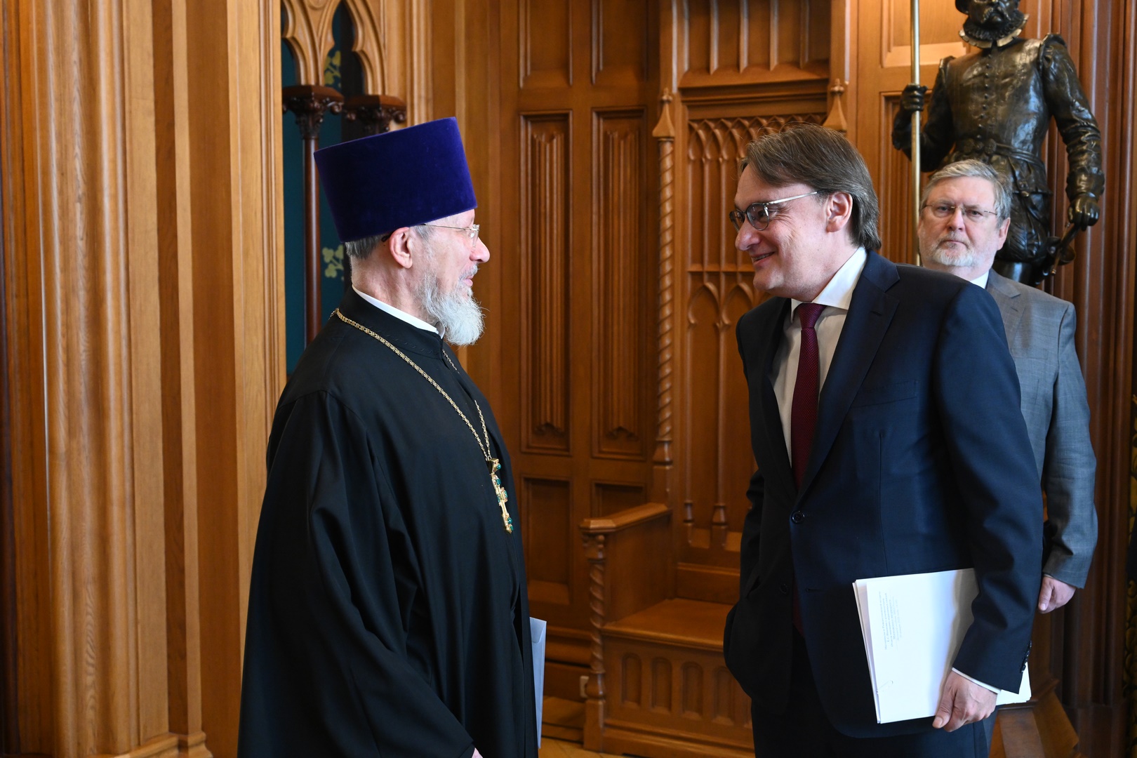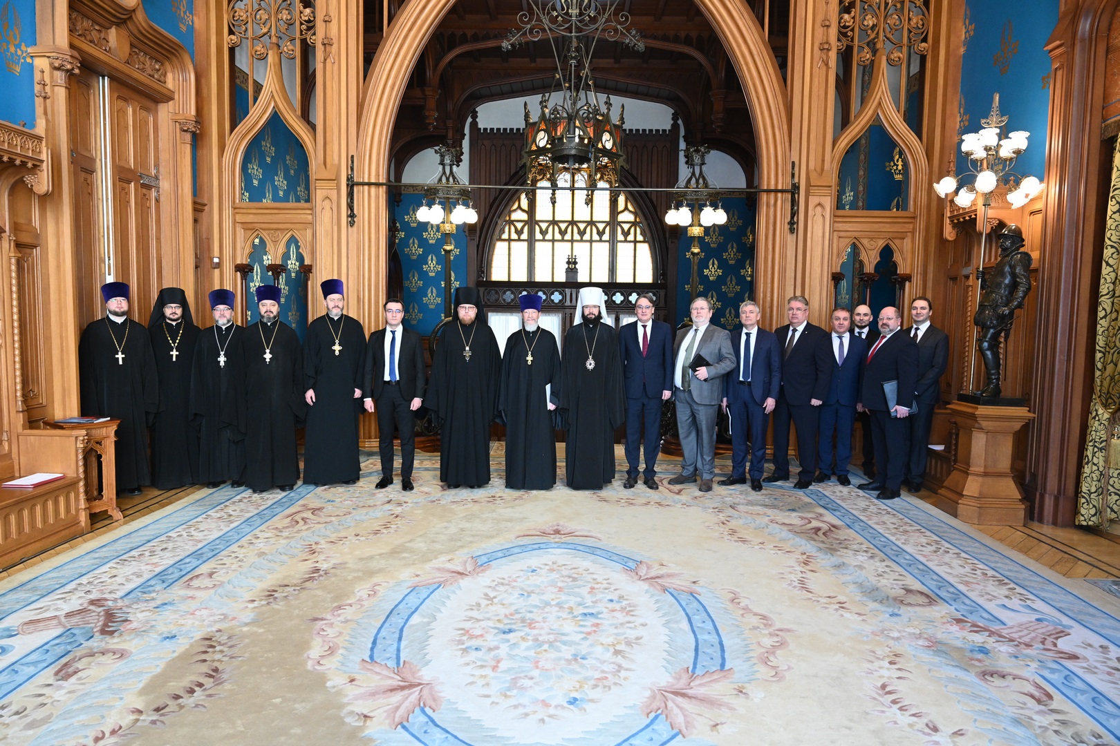 В ходе встречи, прошедшей в теплой атмосфере, обсуждались темы взаимодействия Русской Православной Церкви и российского внешнеполитического ведомства, защиты прав верующих в различных регионах мира, поддержки соотечественников за рубежом, а также религиозные аспекты международных отношений.
