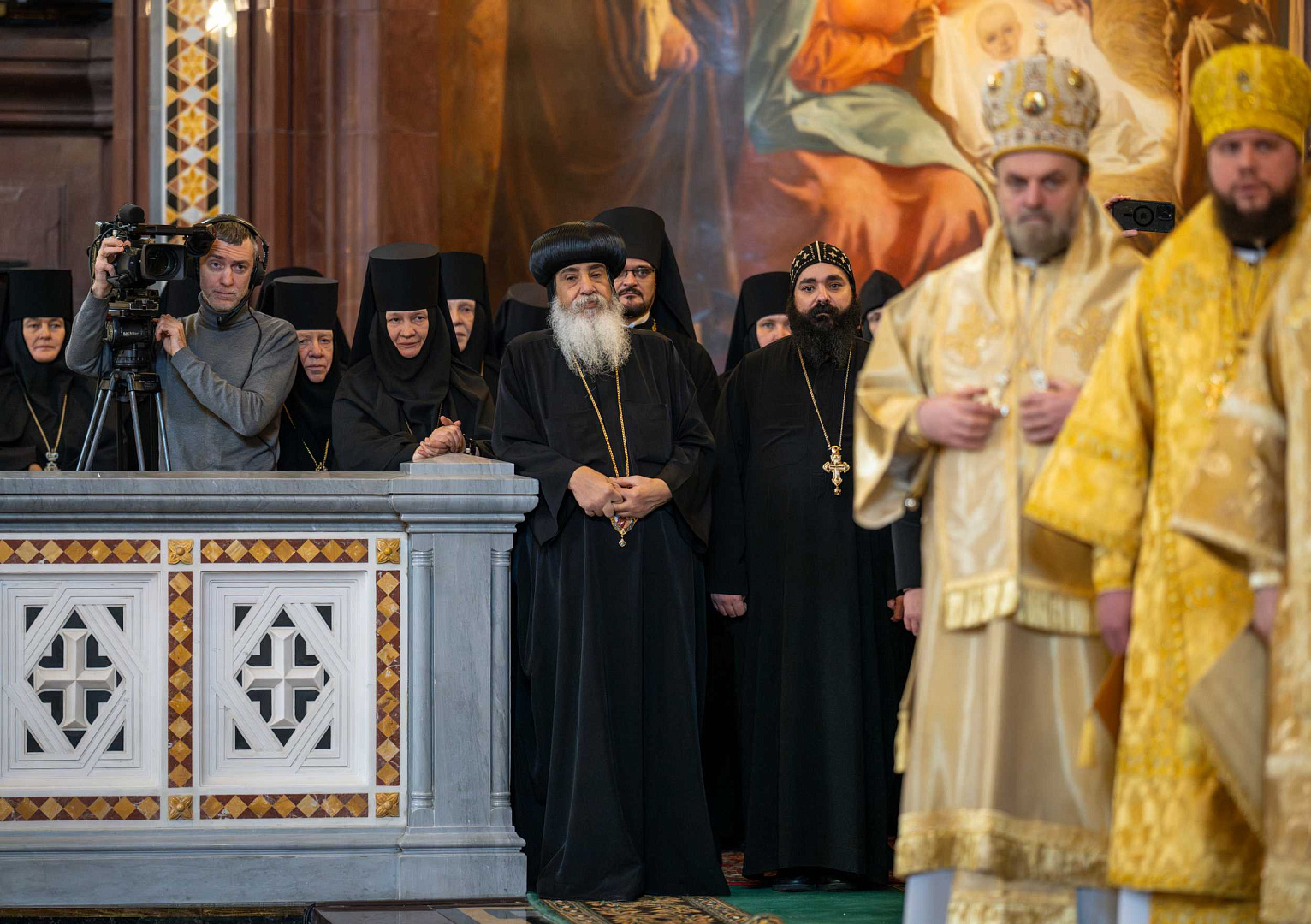 На богослужении присутствовала делегация Коптской Церкви во главе с епископом Даниилом — постоянным членом Священного Синода Коптской Церкви, председателем Патриаршей комиссии по монастырям и монашеству, настоятелем монастыря преподобного Павла Фивейского в Восточной пустыне близ Красного моря. В состав делегации входят: игумения Василия, настоятельница обители Пресвятой Богородицы в Зувейле (Старый Каир); иеромонах Дауд эль-Антони, представитель Коптской Церкви в России; иеромонах Агафон анба-Павла, насельник монастыря преподобного Павла Фивейского; монахиня Анастасия, насельница обители Пресвятой Богородицы в Зувейле (Старый Каир); доктор Антон Милад, Патриарший советник.