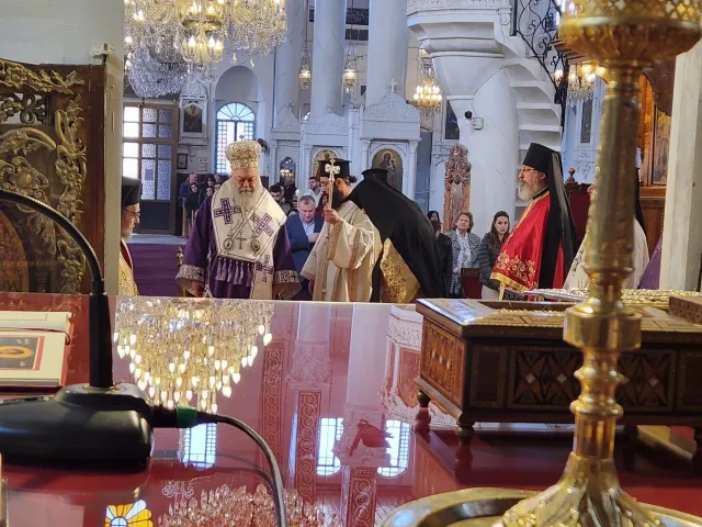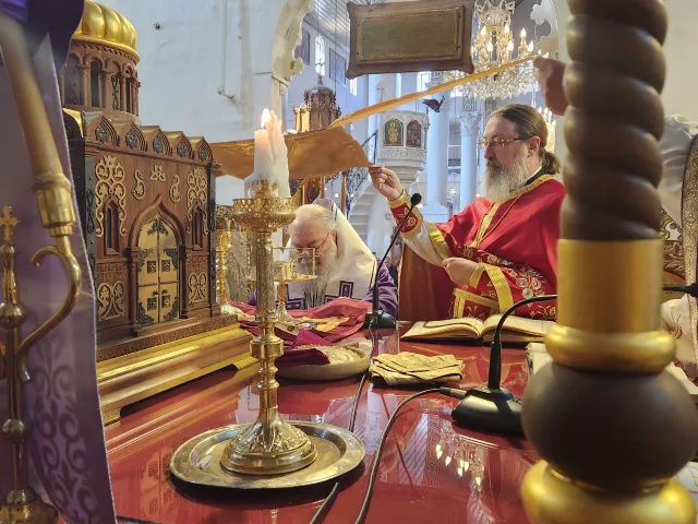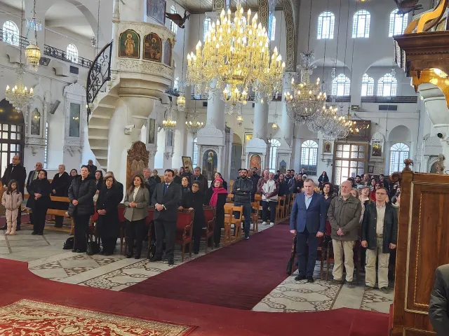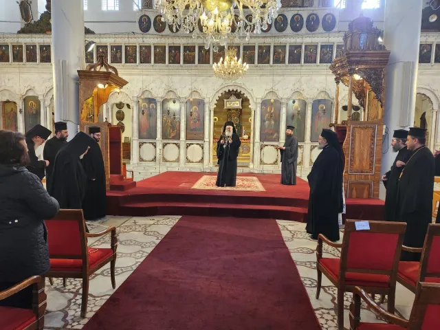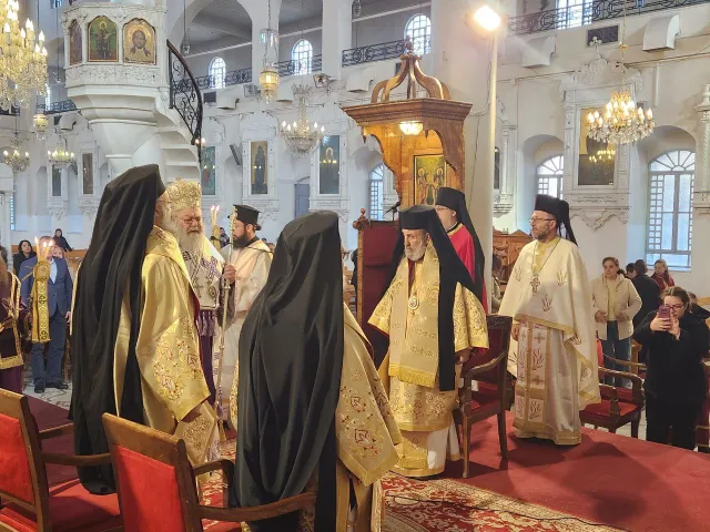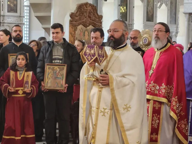 Служба коммуникации ОВЦС 02.03.2026. 1 марта 2026 года, в Неделю 1-ю Великого поста, Торжества Православия, по приглашению Блаженнейшего Патриарха Великой Антиохии и всего Востока Иоанна представитель Русской Православной Церкви архимандрит Филипп (Васильцев) принял участие в Утрени и Божественной литургии в кафедральном соборе в честь Успения Пресвятой Богородицы города Дамаска.