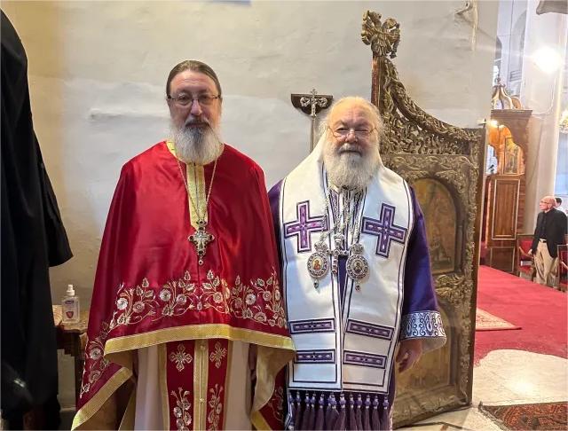 В конце богослужения архимандрит Филипп сердечно поздравил Блаженнейшего Патриарха Иоанна с днем Торжества Православия и преподнёс памятный подарок.
