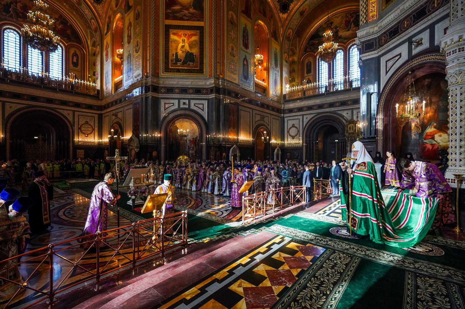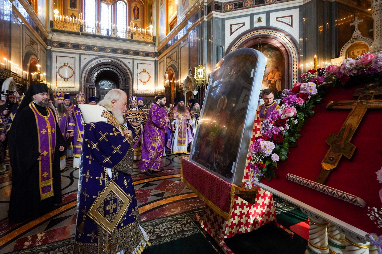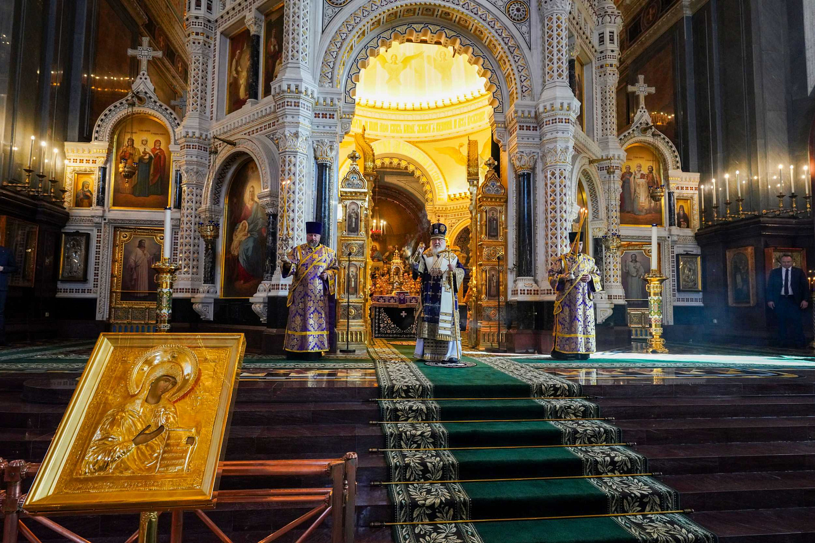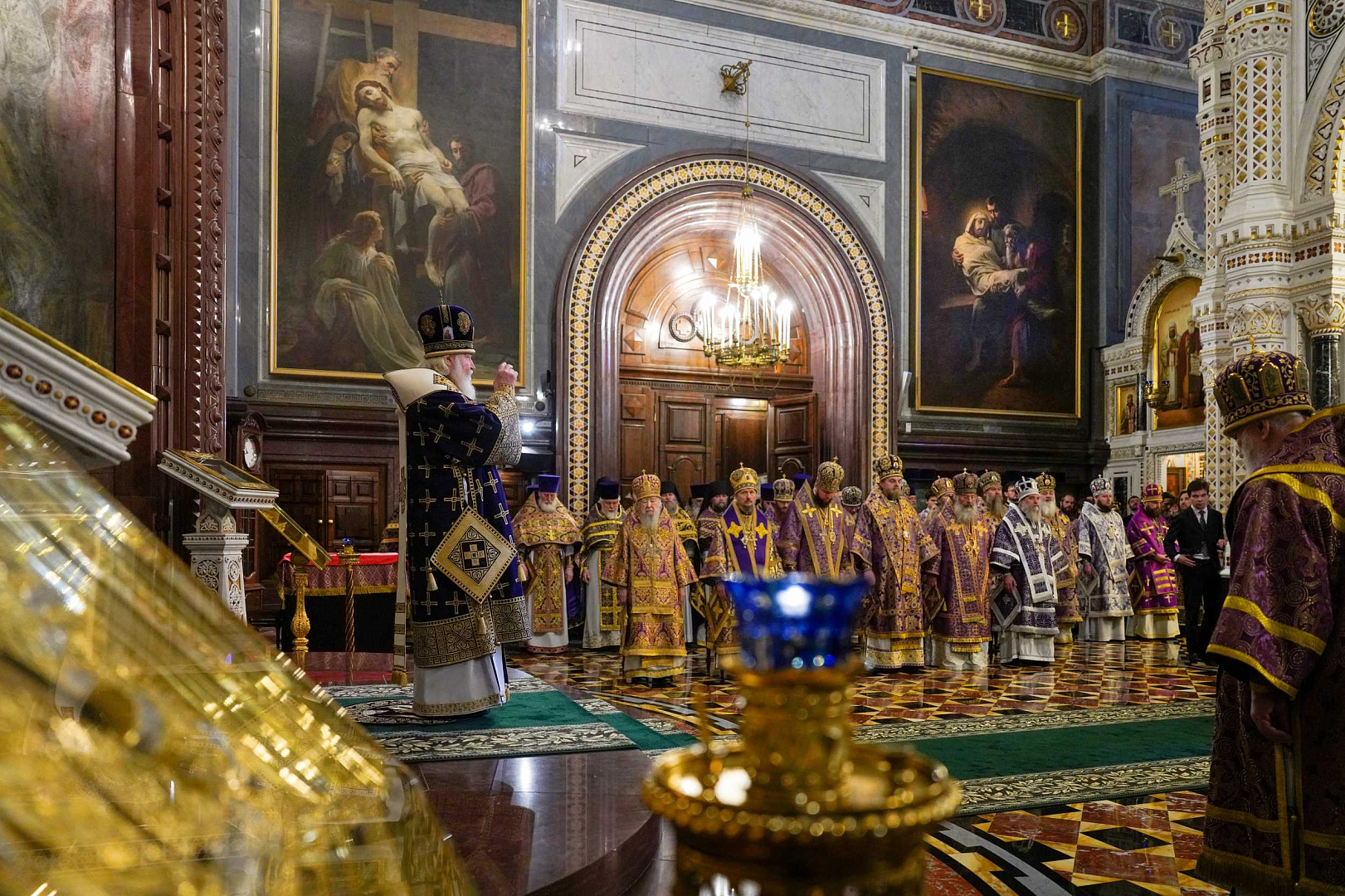 В Неделю Крестопоклонную Предстоятель Русской Церкви совершил Литургию в Храме Христа Спасителя