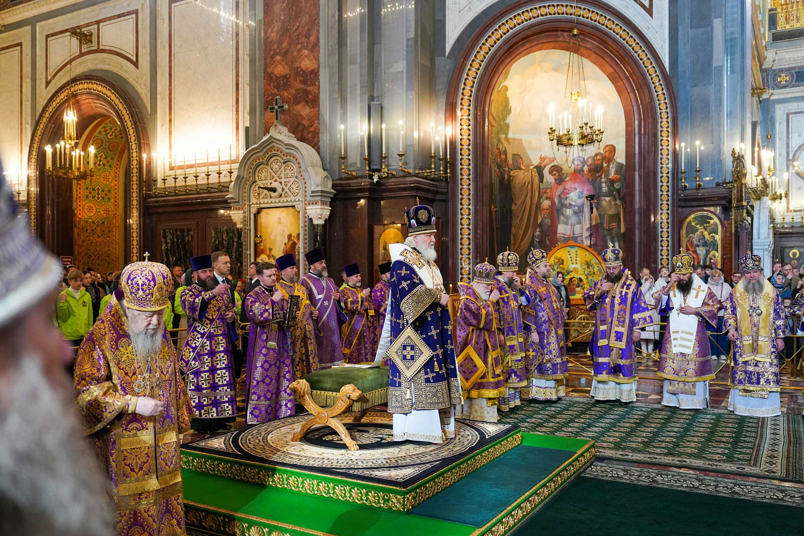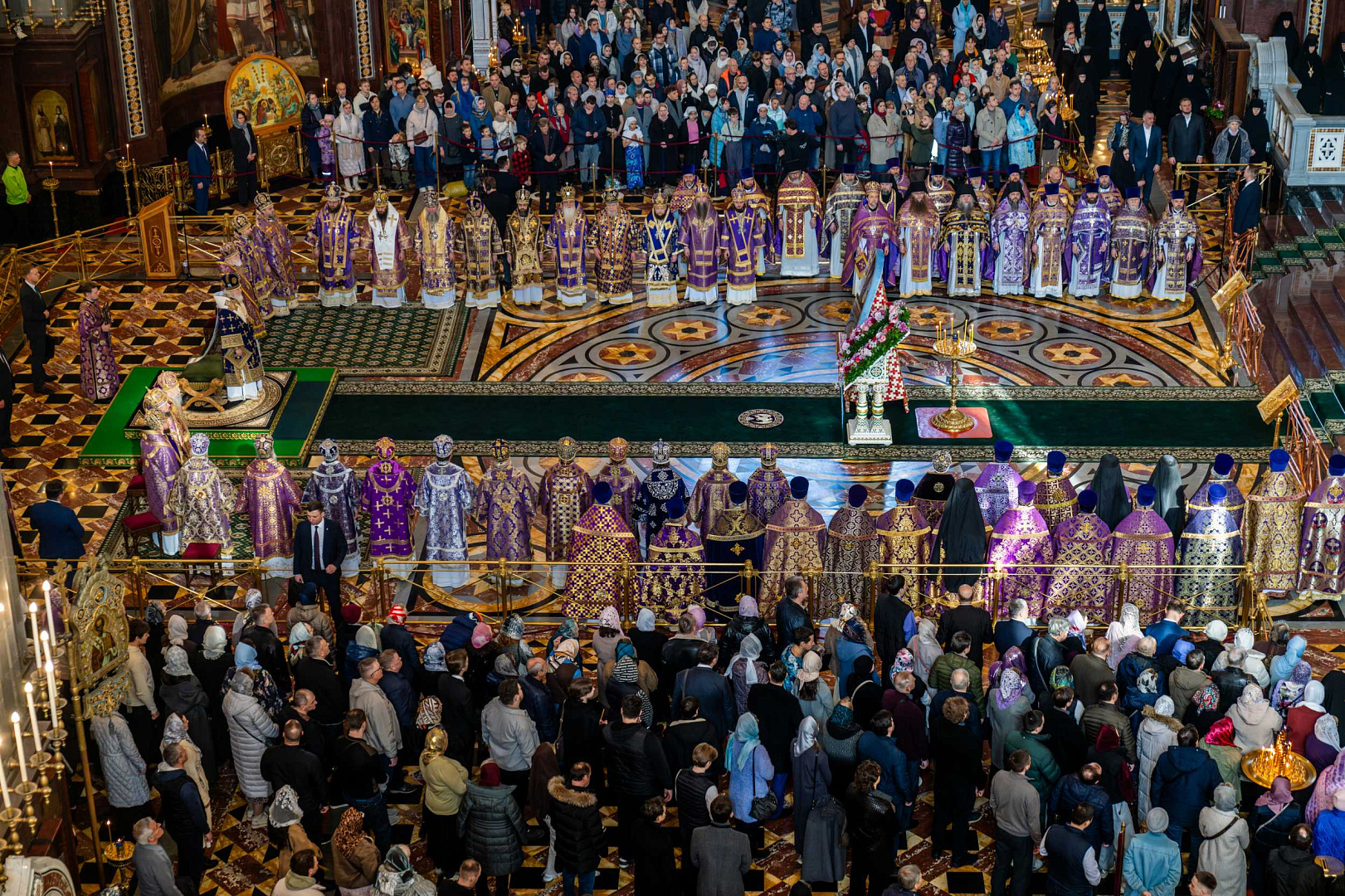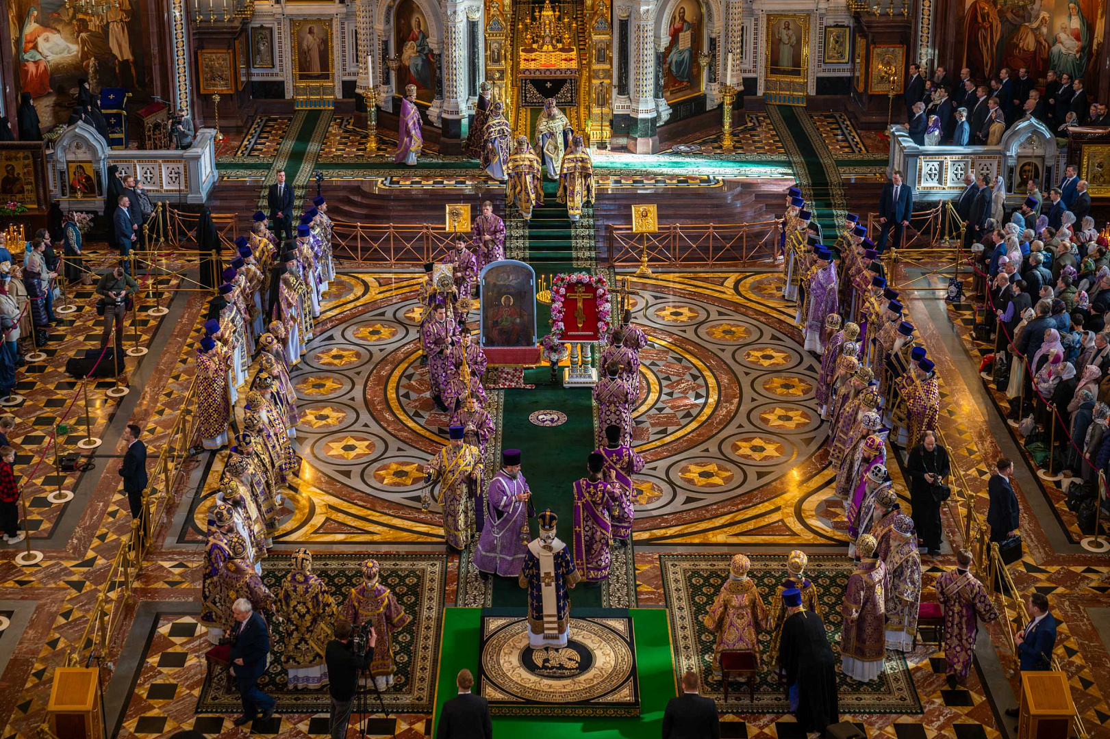 В Неделю Крестопоклонную Предстоятель Русской Церкви совершил Литургию в Храме Христа Спасителя